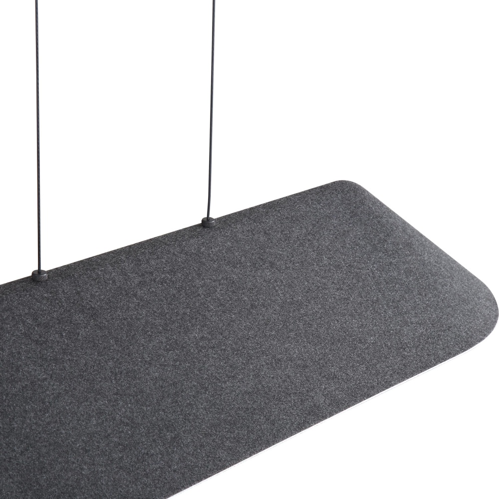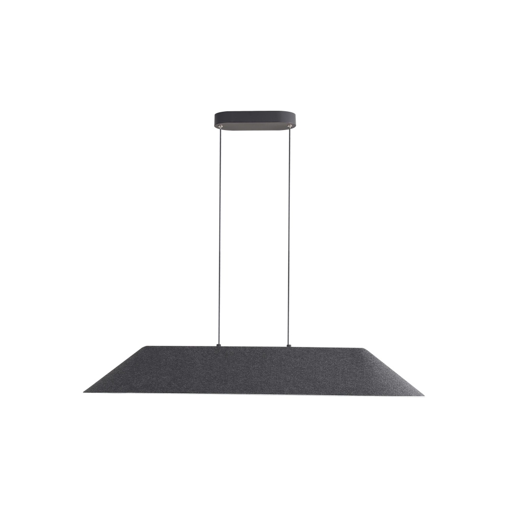 Bring contemporary elegance into your home with the Golden Lighting Faroe Integrated LED Island Light. Featuring a felt shade and a striking Flecked Black/Grey finish, it creates a refined atmosphere. The exterior of black felt with a heathered texture complements a soft gray felt interior, allowing for a neutral, glare-free illumination while enhancing sound-dampening qualities. This piece adds visual depth and tactile warmth to any modern space, designed to enhance your decor with style. Ideal for dry locations, it fits perfectly in kitchens and dining areas. It's sloped-ceiling compatible and features an adjustable height from 7.375" to 127.375". With overall dimensions of 43"W x 6"H x 15.75"D, this integrated LED light provides brilliant illumination at 1080 rated lumens, with a warm 3000K CCT. Upgrade your home with Golden Lighting's commitment to quality and eco-friendly sophistication.