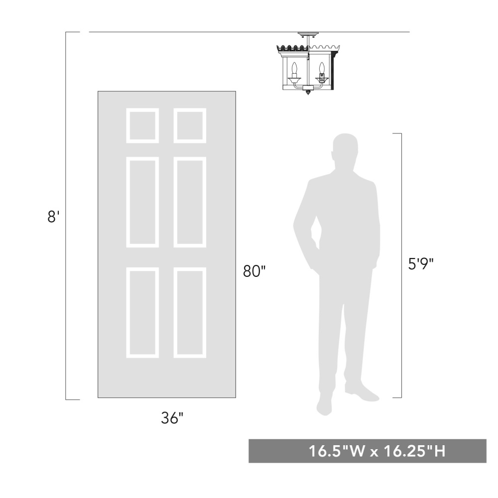Elevate your interiors with the Golden Lighting Finley 4-light Semi-Flush Mount in Vintage Sage. This elegant fixture integrates timeless design with practicality, providing a touch of traditional charm to your space. Featuring no shades that block light, this semi-flush mount is designed to highlight its exquisite vintage sage finish, evoking the beauty of a sun-faded heirloom. Ideal for rooms like entryways, kitchens, or bedrooms with mid-height ceilings, it is damp location rated, making it suitable for areas with occasional moisture. With convenient installation, this light fixture offers a balanced decor solution while requiring just 4 E12 candelabra base bulbs (not included), each allowing for a maximum of 60 watts. The overall dimensions are 16.5"W x 16.25"H x 16.5"D, making it a charming addition that delivers warm illumination. The Finley Semi-Flush Mount embodies craftsmanship and style, inviting a delightful ambiance into your home.