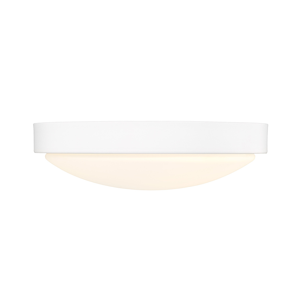 Bring modern elegance into your home with the Golden Lighting Gabi Integrated LED 10in Flush Mount. Featuring an opal glass shade and a Matte White frame, it creates a serene atmosphere. The opal glass shade diffuses light evenly, ensuring a soft, glare-free glow that enhances the comfort of any room. It’s a timeless choice that works across various styles. The Matte White finish embodies modern minimalism, enhancing the clean lines and understated sophistication of this fixture, making it a versatile addition to your décor. Ideal for low ceilings in hallways, closets, laundry areas, bathrooms, and more, this fixture is Damp Location Rated, suited for covered and semi-enclosed spaces with occasional moisture. Overall Dimensions: 10"W x 2.88"H x 10"D, equipped with integrated LED technology that delivers 960 rated lumens with a warm 3000K CCT. Elevate your home with this exceptional fixture that combines functionality with contemporary design elements.