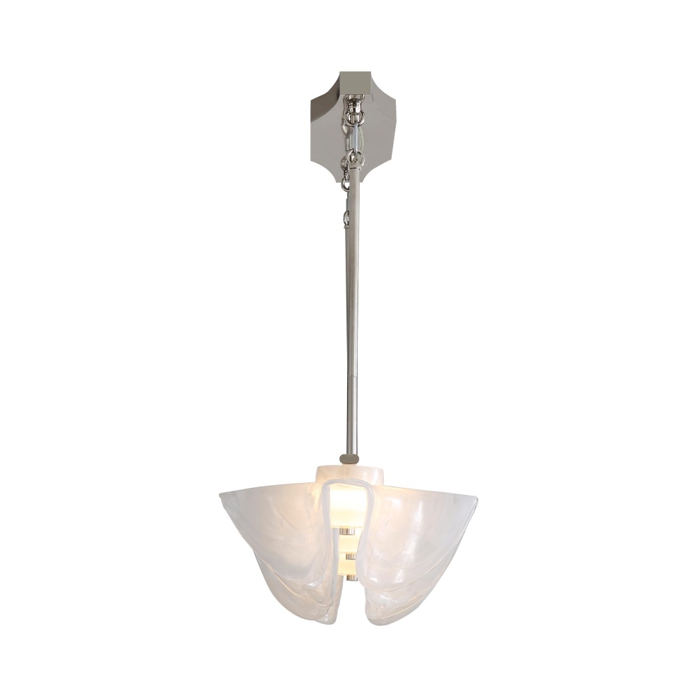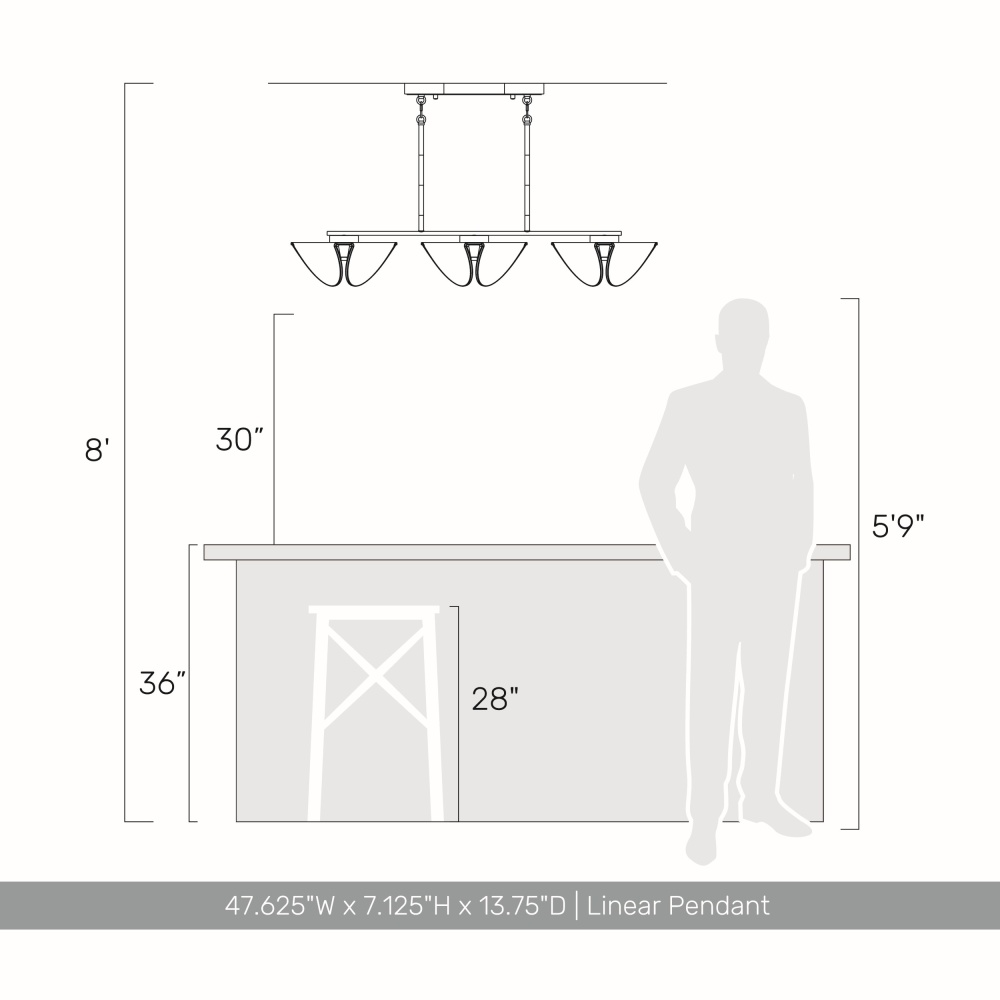 Bring modern elegance into your kitchen with the Golden Lighting Glacier Integrated LED Island Light in Polished Nickel. Featuring a glass shade, it creates a welcoming atmosphere. The Icy glass shade encapsulates hand-crafted artistry, showcasing a cloud-like texture that diffuses light spectacularly, offering a mesmerizing focal point above any kitchen island. With its luxurious Polished Nickel finish, this fixture exudes a classic elegance while effectively reflecting light throughout your space. Tailored for kitchen islands, this light is rated for dry locations and allows for sloped-ceiling installation, with an adjustable height to customize to your needs. Overall Dimensions: 47.63"W x 7.13"H x 13.75"D. Integrated LED technology produces 3240 rated lumens with a warm 3000K glow. Elevate your dining experience with this stunning piece that merges quality with sophistication.