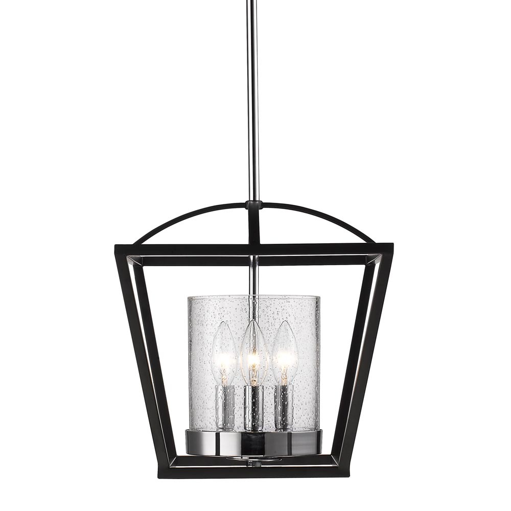 Bring sophisticated style into your home with the Golden Lighting Mercer 3-light Semi-Flush Mount. This fixture features a glass shade and a Matte Black frame, radiating warmth and elegance. The seeded glass shade introduces a unique texture, diffusing light while providing vintage charm, which is enhanced by the presence of tiny bubbles that catch and reflect light. The deep Matte Black finish adds a timeless touch, making it a versatile choice for various décor styles. This semi-flush mount is ideal for entryways, bedrooms, and kitchens, and is Damp Location Rated for spaces with occasional moisture. Featuring an adjustable height for customizable installation on both flat and sloped ceilings, it meets diverse ceiling needs. With dimensions of 11.75"W x 12"H x 11.75"D, it requires 3 E12 Candelabra base bulbs (not included), max wattage 60 per bulb. Transform your space with this beautiful lighting fixture that mixes functionality and style seamlessly.