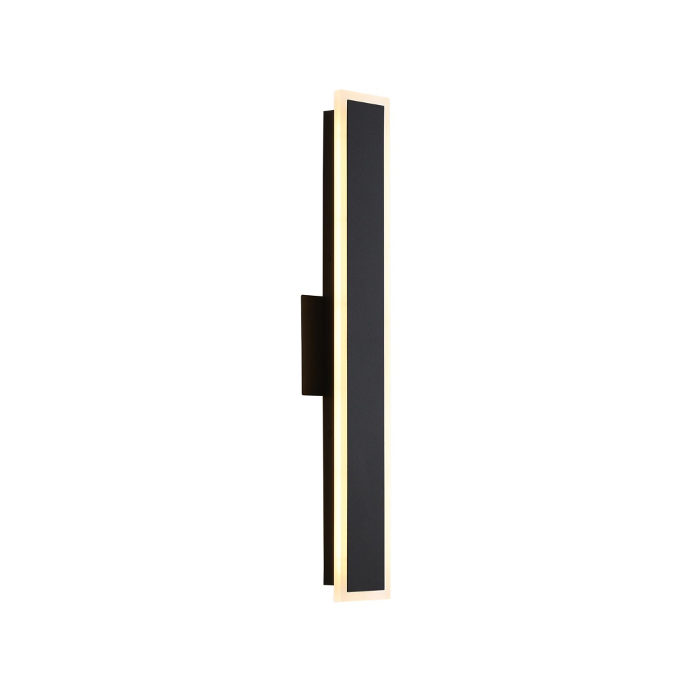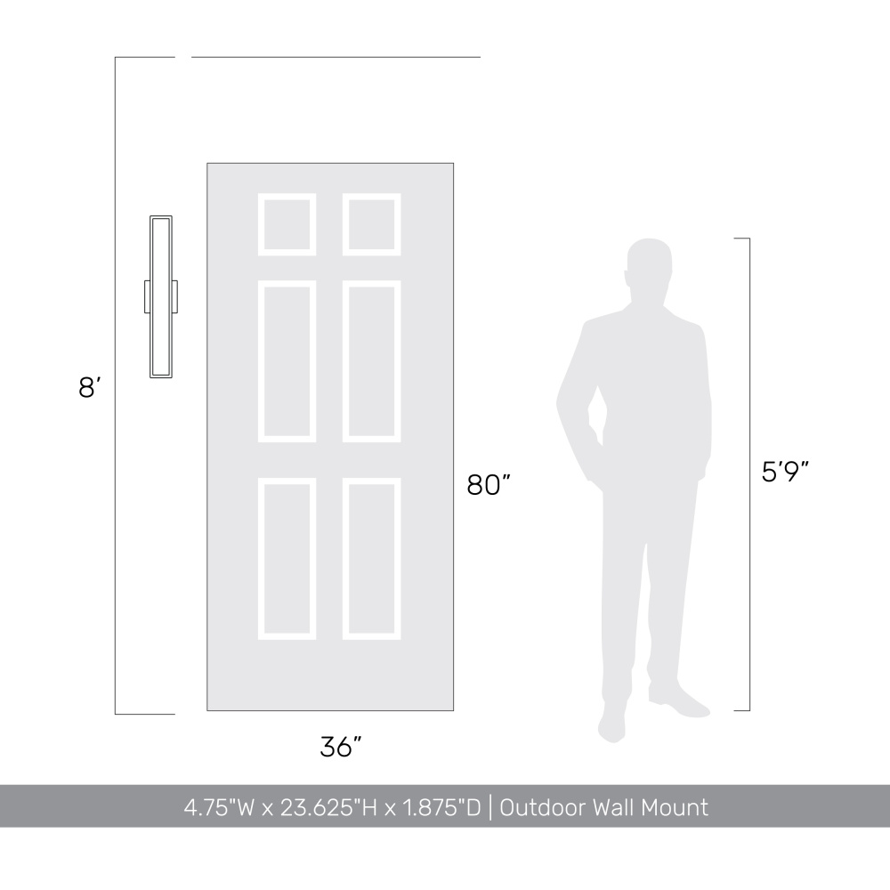 Bring modern elegance into your home with the Golden Lighting Obsidian Integrated LED 24in Outdoor Wall in Sand Black. It creates a welcoming atmosphere with its sleek design and sophisticated Sand Black finish. This outdoor wall sconce features a contemporary linear structure, providing a seamless wash of illumination, ideal for any modern exterior. Designed with a no shade structure, this fixture offers brilliant illumination without hindrance. The integrated LED technology ensures energy efficiency and longevity, producing a warm glow that highlights your outdoor spaces beautifully. The Sand Black finish features a deep, solid hue with a non-reflective matte surface, providing a textured appeal that absorbs light brilliantly. This durable, powder-coated aluminum construction is UV- and corrosion-resistant, ensuring longevity and high-quality performance both indoors and outdoors. Perfect for entryways, patios, and garage doors, this fixture is safety-rated for wet locations, designed to withstand various weather elements for versatile application. Overall dimensions are 4.75"W x 23.63"H x 1.88"D, and it features integrated LED technology that offers 830 lumens with a dimmable 3CCT option, allowing you to choose between three color temperatures for customizable ambiance. Elevate your outdoor experience with the quality craftsmanship of Golden Lighting, where functionality meets aesthetic appeal.
