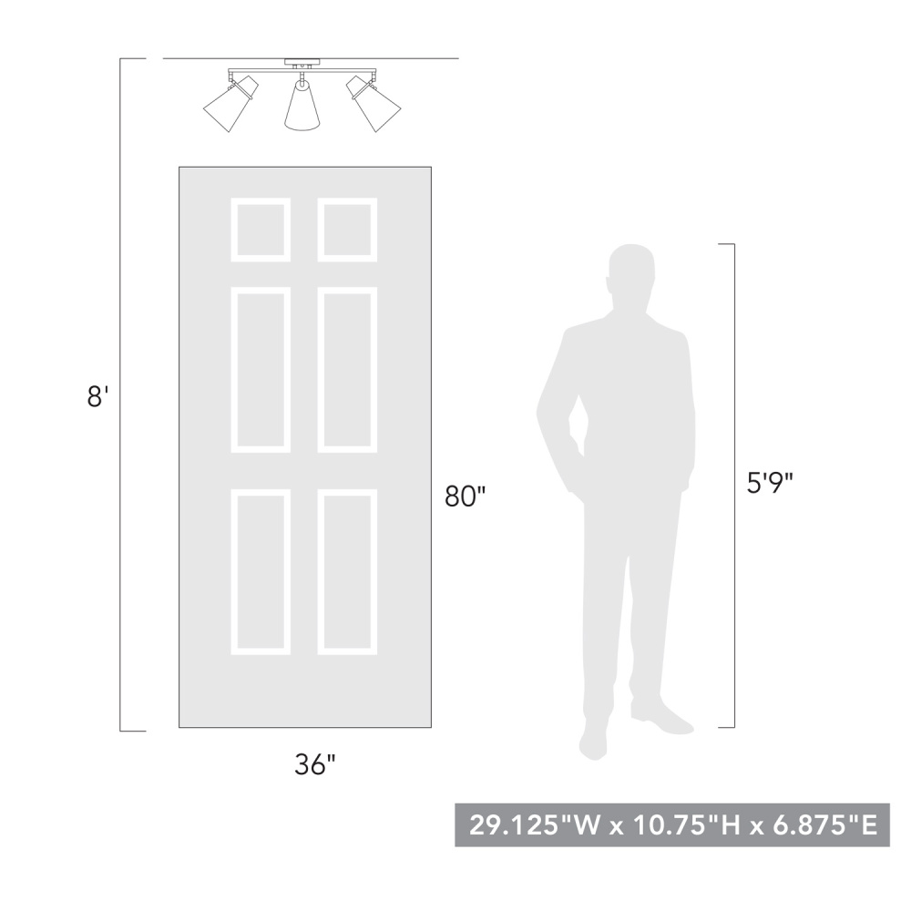 Bring retro-modern elegance into your room with the Golden Lighting Reeva 3-light Semi-Flush Mount. Featuring a Matte Black metal shade and a Modern Brass frame, it creates a bright and inviting atmosphere. The Matte Black shade offers a deep, uniform color with a non-reflective matte sheen, absorbing light and delivering a soft, sophisticated effect. This timeless finish enhances clean, modern designs within your decor. Our Modern Brass finish epitomizes understated elegance—soft, muted, and beautifully diffusing light for a welcoming glow. Ideal for entryways, bedrooms, kitchens, and living areas, this damp location rated fixture works well in covered spaces. The adjustable directional heads allow you to highlight specific areas as needed. Overall dimensions are 29.13"W x 10.75"H x 6.88"D, requiring 3 E26 medium base bulbs (not included) with a maximum wattage of 100 each. Enjoy the blend of style and functionality that this fixture offers, making it a substantial focal point in any room.
