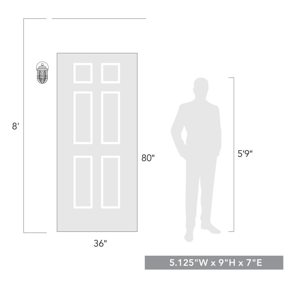 Bring coastal elegance into your home with the Golden Lighting Seaport 1-light 5in Outdoor Wall. Featuring a glass shade and a natural black frame, it creates a delightful atmosphere. The glass shade is crafted from seeded glass, showcasing small air bubbles for a unique antique texture. When illuminated, it diffuses light beautifully, adding sparkle to your outdoor area. Our natural black finish delivers a soft, organic appeal—resembling raw iron—with a matte, chalky texture. Ideal for entryways, patios, and garage doors, this fixture is wet location rated, ensuring durability against rain and snow. Overall Dimensions: 5.13"W x 9.25"H x 7"D. Requires 1 E26 Medium base bulb (not included), with a maximum wattage of 60. Upgrade your outdoor lighting with this stunning fixture that seamlessly blends quality and style.