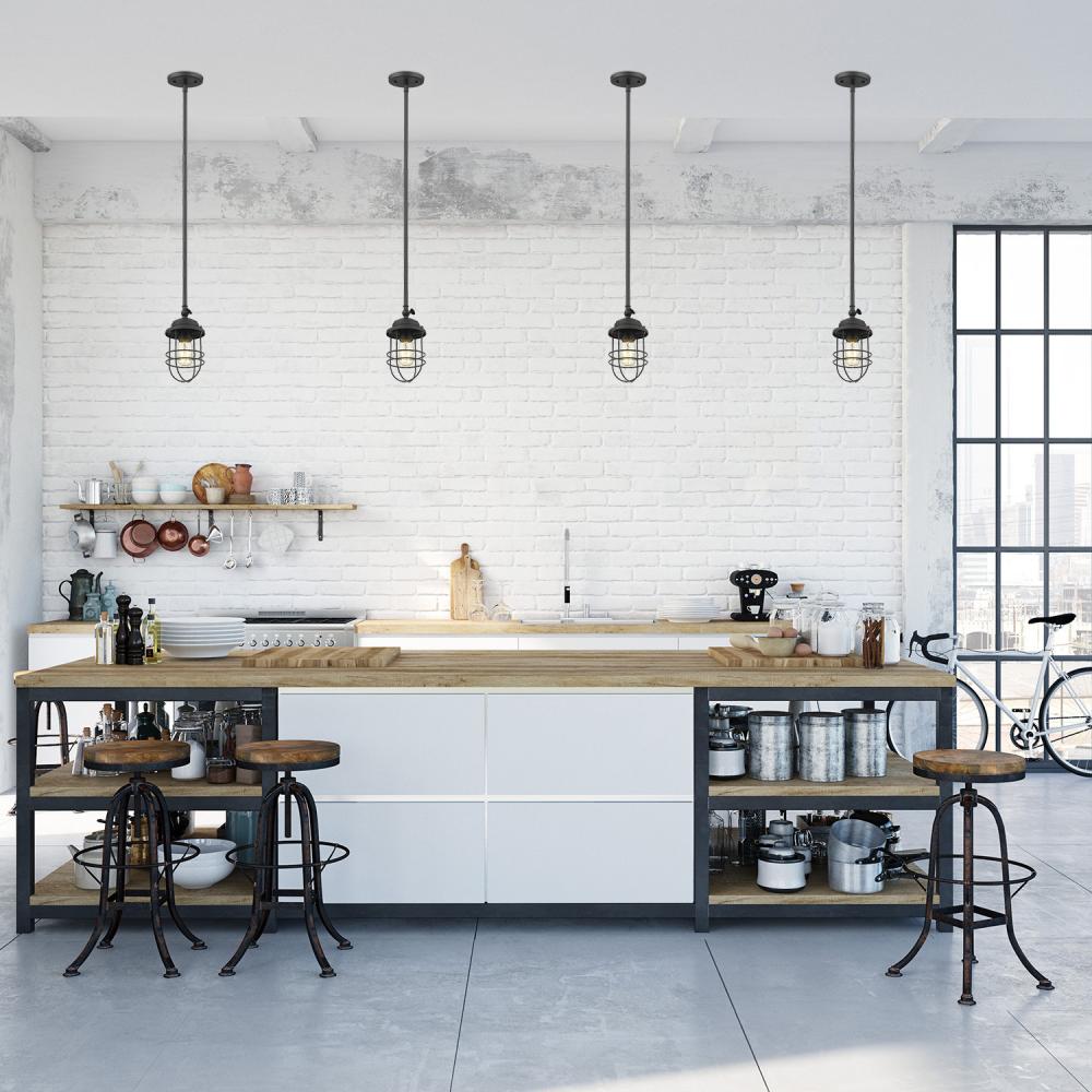 Bring coastal elegance into your home with the Golden Lighting Seaport 1-light Pendant in Matte Black. Featuring a metal shade and a matte black frame, it creates a welcoming atmosphere. The metal shade provides a classic cage design, enhancing the lighting experience with a touch of nautical inspiration. The matte black finish reflects the epitome of modern style, with a smooth surface that absorbs light, instilling a sophisticated yet relaxed aesthetic in your interiors. This versatile fixture fits seamlessly in any decor, from minimalist to industrial. Perfect for kitchens, dining rooms, and entryways, this pendant light is damp location rated for areas with occasional moisture. It features a convertible design for adjustable height installation, making it adaptable for various ceiling types. This fixture requires 1 E26 medium base bulb (not included) with a maximum wattage of 60. Overall Dimensions: 4.63"W x 9.25"H x 4.63"D. Elevate your lighting with a fixture that perfectly combines function and beauty in any setting.