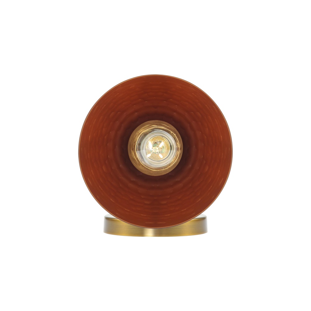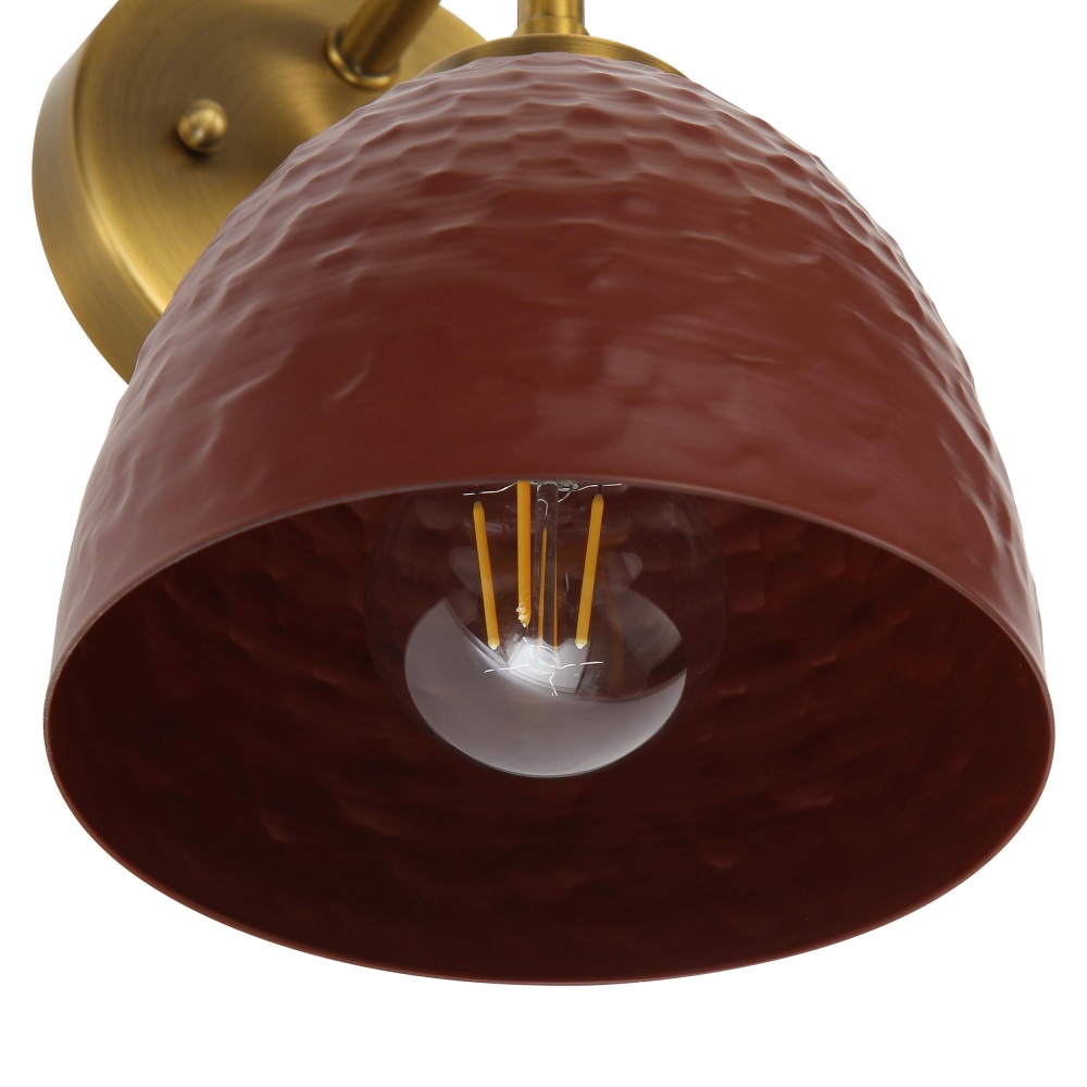 Bring earthy elegance into your home with the Golden Lighting Shepard 1-light Wall Sconce. Featuring a Metal shade and a Modern Brass finish, it creates a welcoming atmosphere. The Metal shade, finished in Russet Clay, celebrates rich, earthy tones, offering a bold yet sophisticated look. This smooth surface allows for a clean, uniform light effect that enhances the beauty of its surroundings. Our Modern Brass finish exemplifies understated elegance, providing a rich, warm hue reminiscent of treasured heirloom pieces. This versatile fixture is suitable for hallways, stairways, and bathrooms and is Damp Location Rated, making it ideal for covered and semi-enclosed spaces. Requires one E26 Medium base bulb (not included) with a maximum of 100 watts for efficient illumination. Overall dimensions are 6.25"W x 9.25"H x 7.25"D. Add this wall sconce to your home for a blend of function and rustic charm that elevates your space.