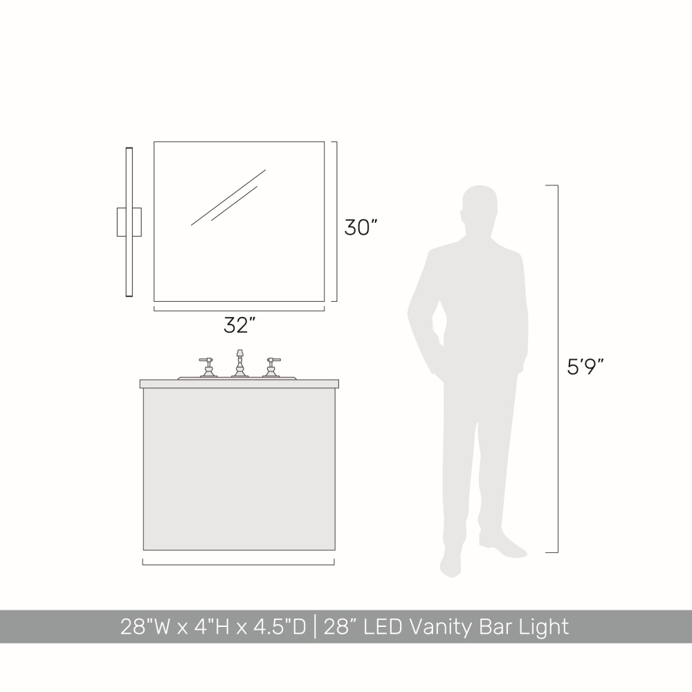 Bring modern elegance into your home with the Golden Lighting Vireo Integrated LED 28in Vanity in Driftwood. Featuring a sleek design and a Driftwood frame, it creates a welcoming atmosphere. This design utilizes integrated LED technology, which provides brilliant illumination while maintaining a clean, uncluttered profile. The Driftwood finish captures the serene beauty of the coast, realistically replicating sun-bleached wood with soft grays and pale beiges, adding authentic texture to any space. Brighten up bathrooms with dedicated lighting that flatters while providing practical task illumination. Rated for damp locations, it's perfect for spaces with occasional moisture, like bathrooms and covered porches. The dimensions of this fixture are 28"W x 4"H x 4.5"D, and it features integrated LED technology that produces 900 lumens with a warm 3000K glow. Elevate your lifestyle with this high-quality, functional lighting solution.
