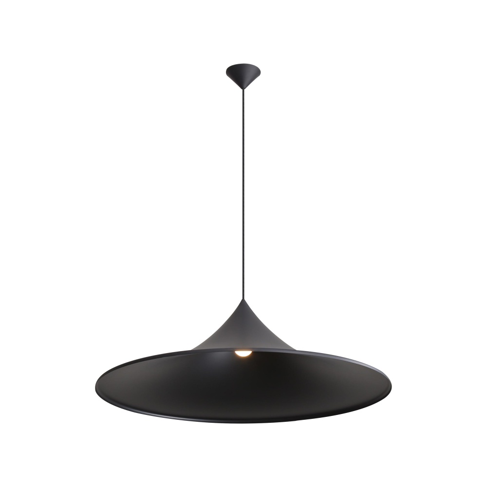 Bring sophisticated allure into your home with the Golden Lighting Vistara 1-light 35in Pendant in Sand Black. Featuring a metal shade and a Sand Black frame, it creates a commanding atmosphere. The deep black color, combined with a fine, uniform sandy texture, absorbs light beautifully, making it a perfect choice for modern and minimalist designs. Add a stylish statement to kitchens, dining rooms, or bedrooms — ideal for focused yet decorative illumination in entryways, foyers, and even bathrooms. Dry Location Rated: Ideal for indoor spaces not subject to moisture. Easily install on angled ceilings and customize the hanging length from a minimum of 14.625" to a maximum of 134.625". Overall Dimensions: 35.38"W x 11.88"H x 35.38"D and requires 1 E26 Medium base bulb (not included, max 60 wattage). With expert craftsmanship ensuring a pristine finish, this pendant brings both style and quality to your space.