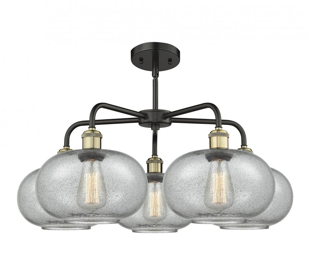 Gorham - 5 Light - 28 inch - Black Antique Brass - Charcoal Shade - Chandelier