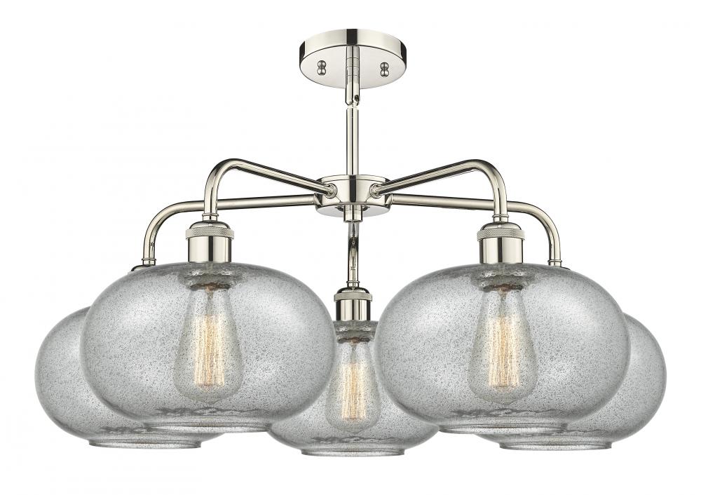 Gorham - 5 Light - 28 inch - Polished Nickel - Charcoal Shade - Chandelier