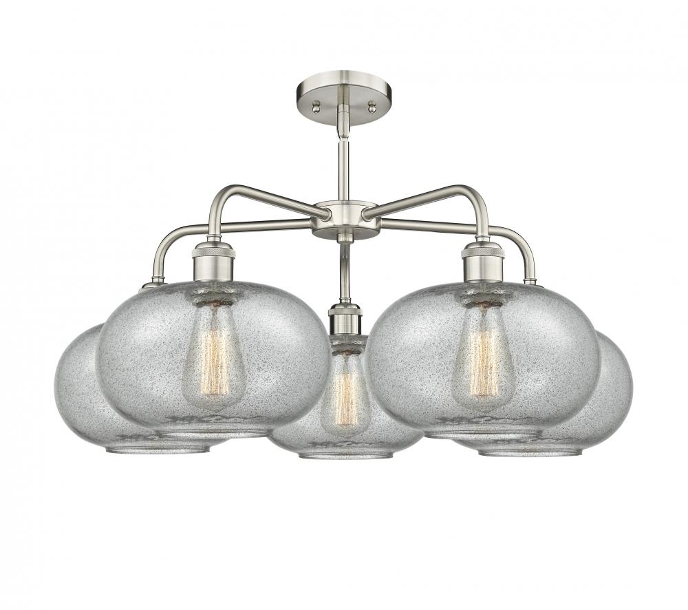 Gorham - 5 Light - 28 inch - Satin Nickel - Charcoal Shade - Chandelier