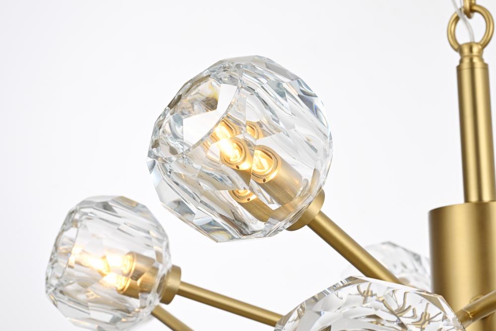 Crafted from iron metal and crystal, it features a round ceiling canopy, a 60 inch hanging chain, and arms extended with a solid K9 crystal ball from rods at all angles for a modern and linear look. Each 20W G9 bulb ( not included) is diffused by a faceted clear crystal ball giving the fixture a touch of industrial and glam inspiration. This work of art will add an artful focal point to your entryway, dining room, kitchen, or office. Evoking a sophisticated and timeless aesthetic to any space and will be an instant conversation started with its finely faceted crystal sphere which is polished by hand to reflect and refract light. Available in three different finishes in gold, chrome, and black.