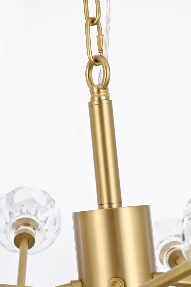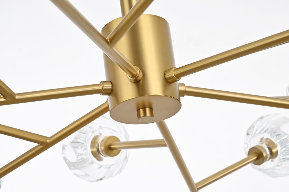 Crafted from iron metal and crystal, it features a round ceiling canopy, a 60 inch hanging chain, and arms extended with a solid K9 crystal ball from rods at all angles for a modern and linear look. Each 20W G9 bulb ( not included) is diffused by a faceted clear crystal ball giving the fixture a touch of industrial and glam inspiration. This work of art will add an artful focal point to your entryway, dining room, kitchen, or office. Evoking a sophisticated and timeless aesthetic to any space and will be an instant conversation started with its finely faceted crystal sphere which is polished by hand to reflect and refract light. Available in three different finishes in gold, chrome, and black.