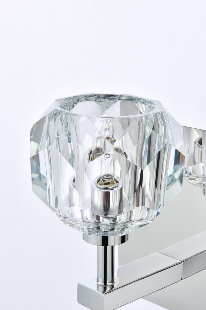 Crafted from iron metal and crystal, it features a rectangular backplate and arms extended with solid K9 crystal ball for a modern and linear look. Each 20W G9 bulb ( not included) is diffused by a faceted clear crystal ball giving the fixture a touch of industrial and glam inspiration. This work of art will add an artful focal point to your entryway, dining room, kitchen, or office. Evoking a sophisticated and timeless aesthetic to any space and will be an instant conversation started with its finely faceted crystal sphere which is polished by hand to reflect and refract light. Available in three different finishes in gold, chrome, and black.