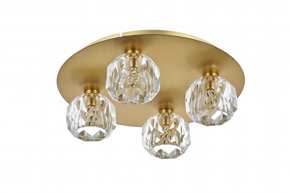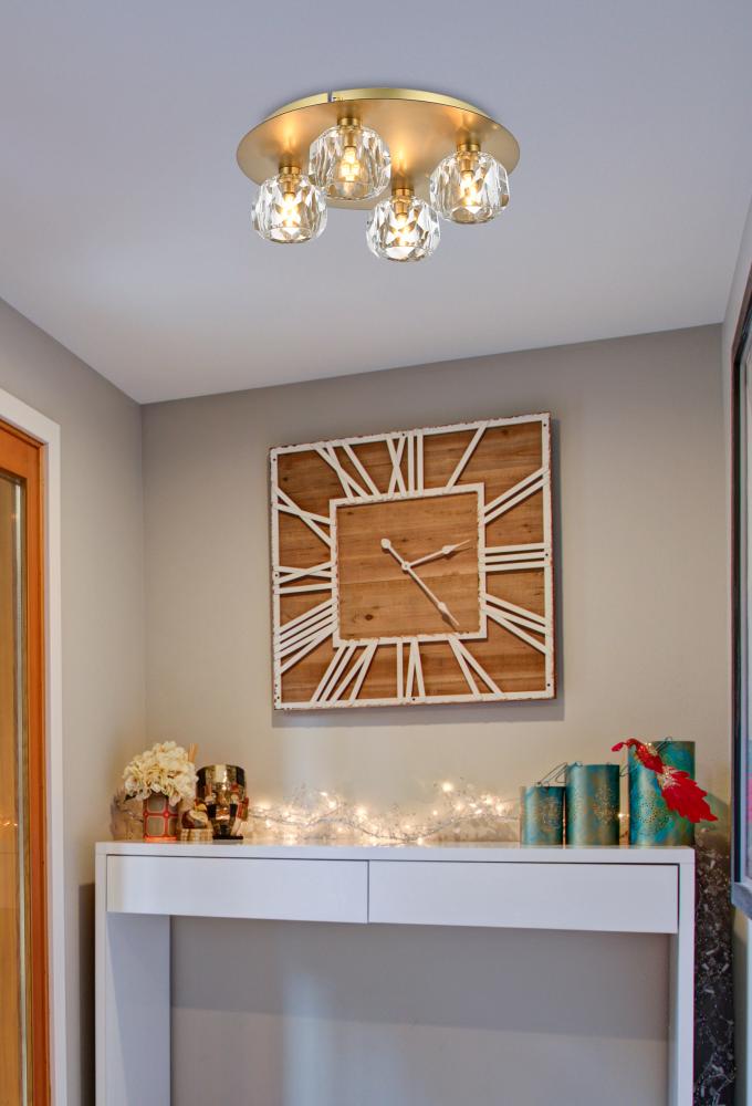Hexagonal and pentagonal facets on the 4 inch crystal spheres tastefully diffuses the soft illumination from each arm