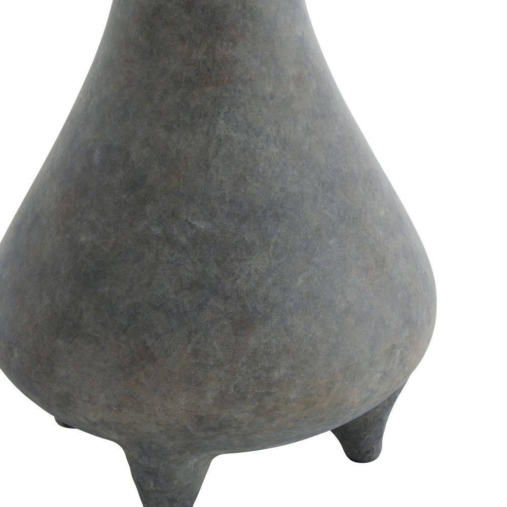The quirky silhouette of our terracotta lamp gives the illusion of a fanciful animal. Oversized in scale and finished with a textural rhino glaze, it makes an impactful accessory for a living space or bedroom. Topped with an off-white microfiber drum shade in off-white cotton. Antique brass-plated steel hardware and matching finial. Finish will vary.