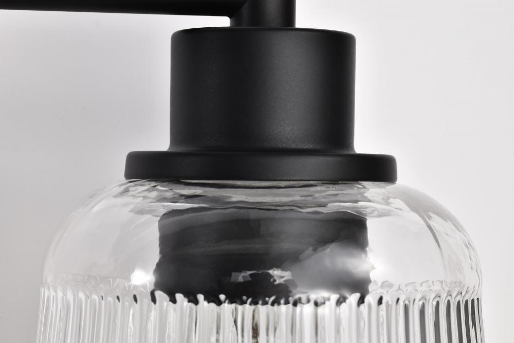 Finished in Matte Black with Clear Ribbed Glass
