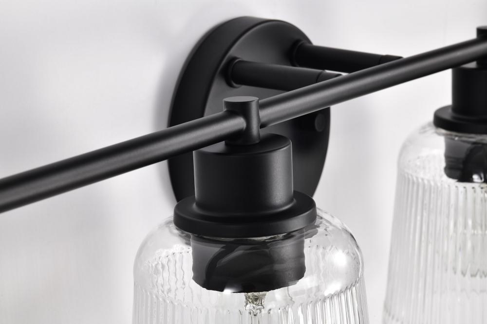 Grayson; 4 Light Vanity; Matte Black Finish; Clear Ribbed Glass