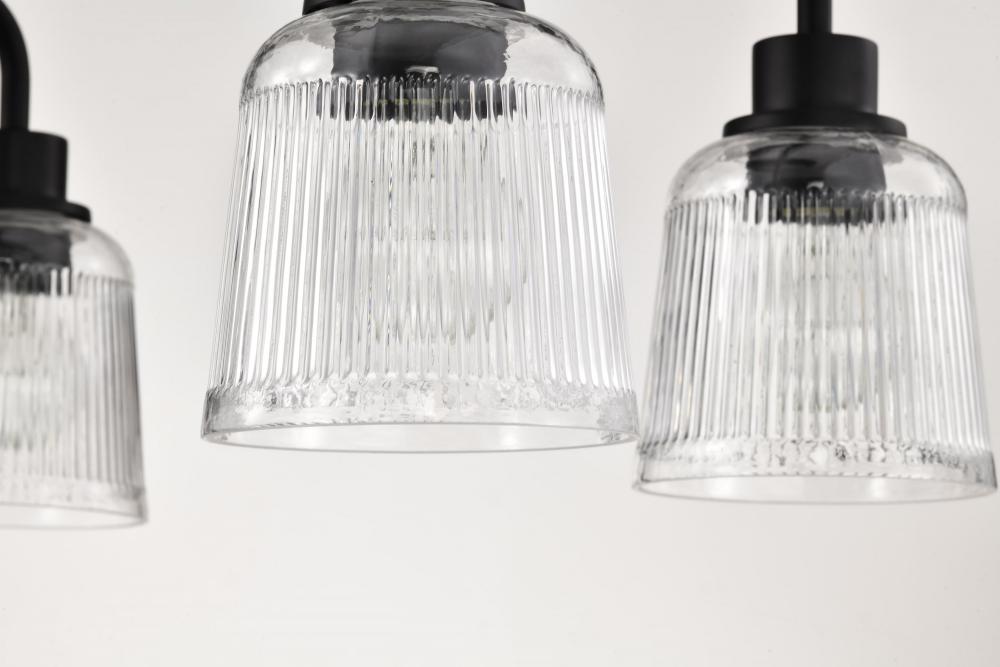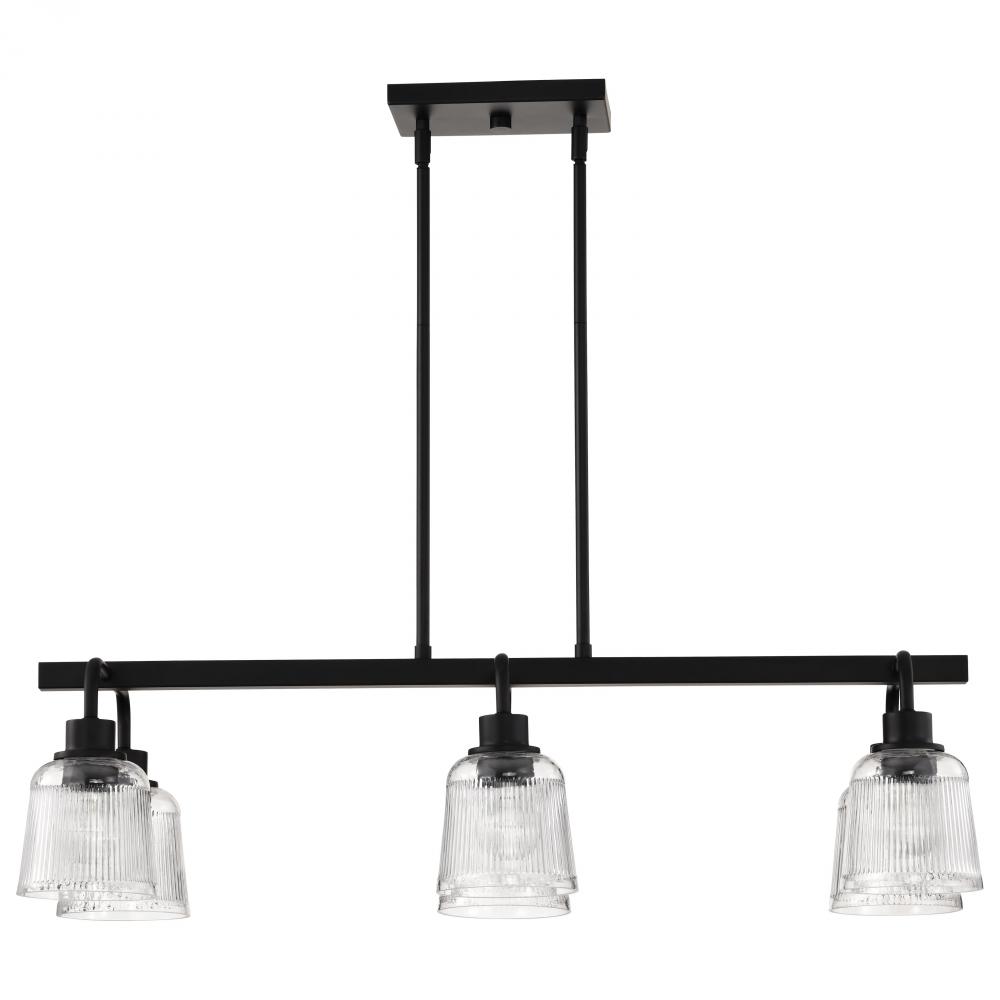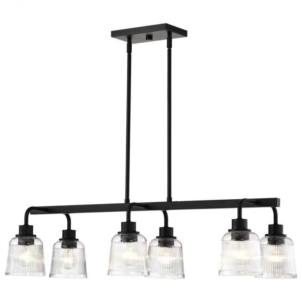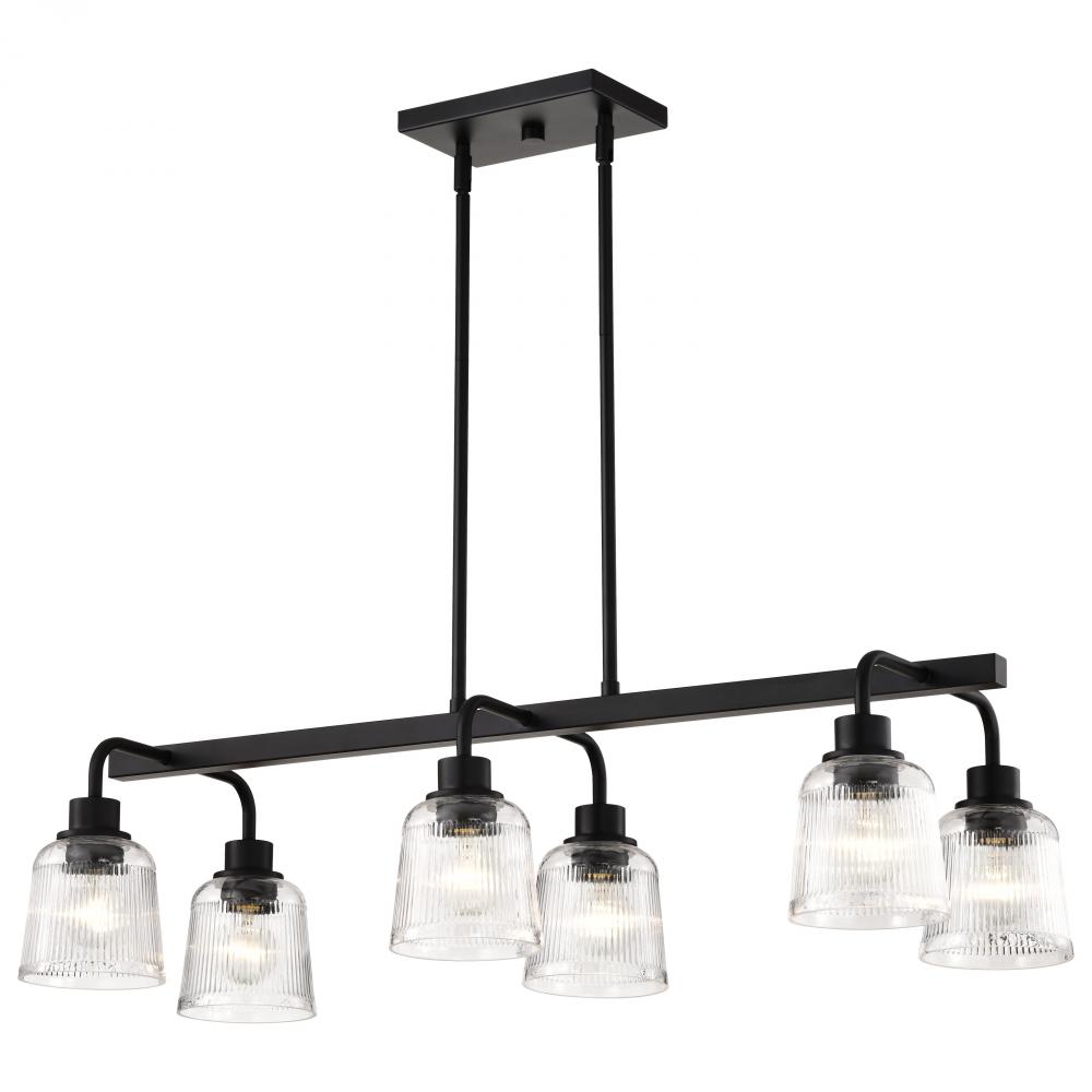 Grayson; 6 Light Island Pendant; Matte Black Finish; Clear Ribbed Glass