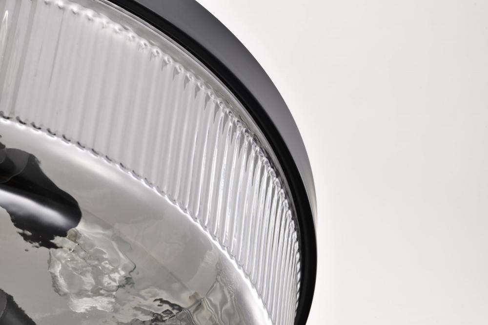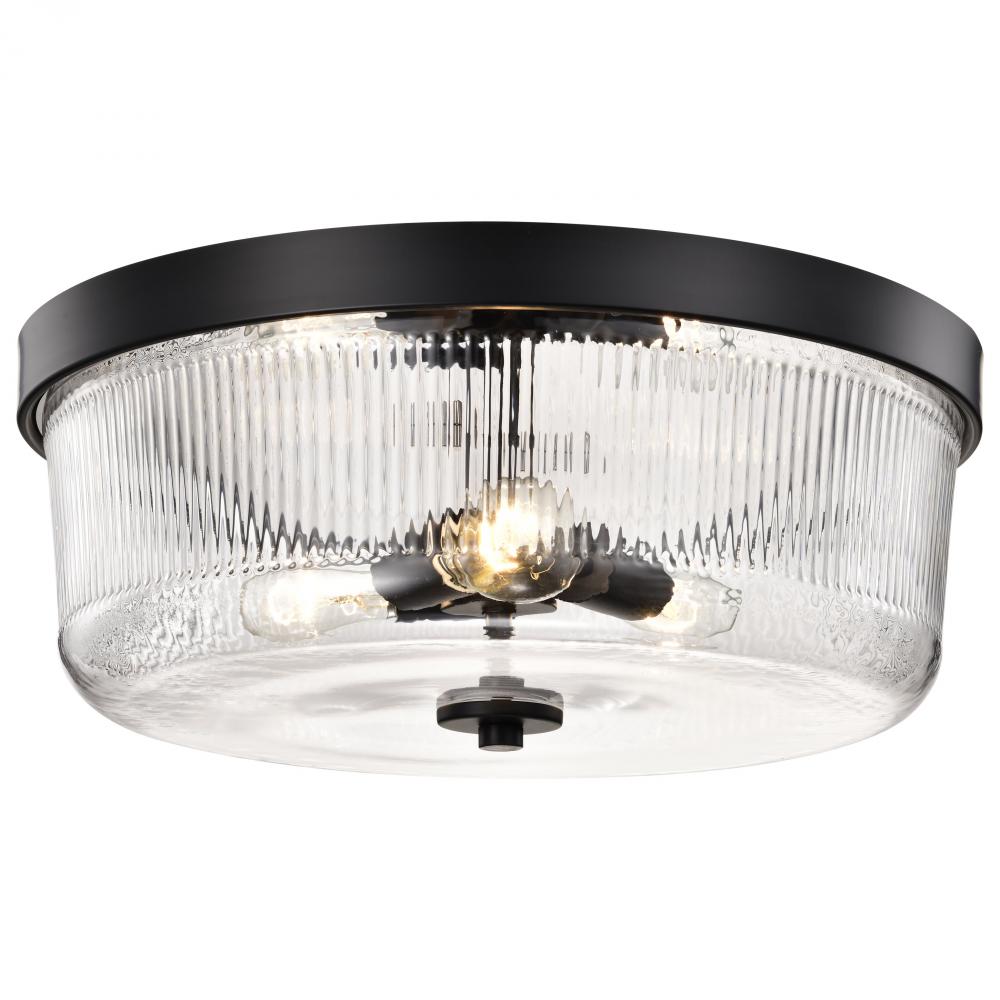 Grayson; Large Flush Mount; Matte Black Finish; Clear Ribbed Glass