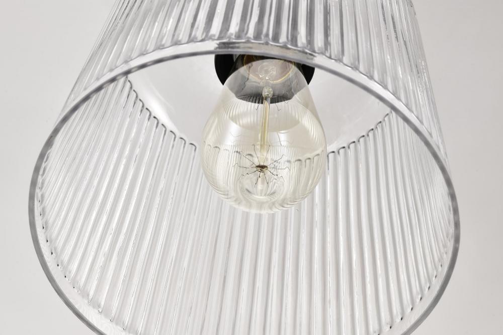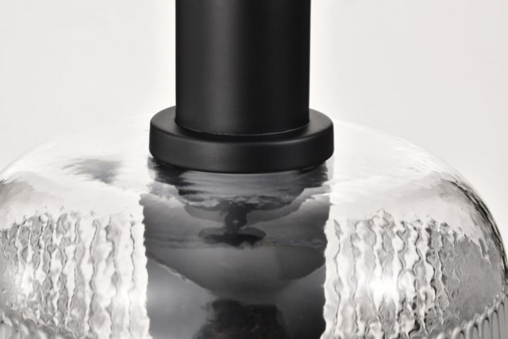 Grayson; Small Pendant; Matte Black Finish; Clear Ribbed Glass
