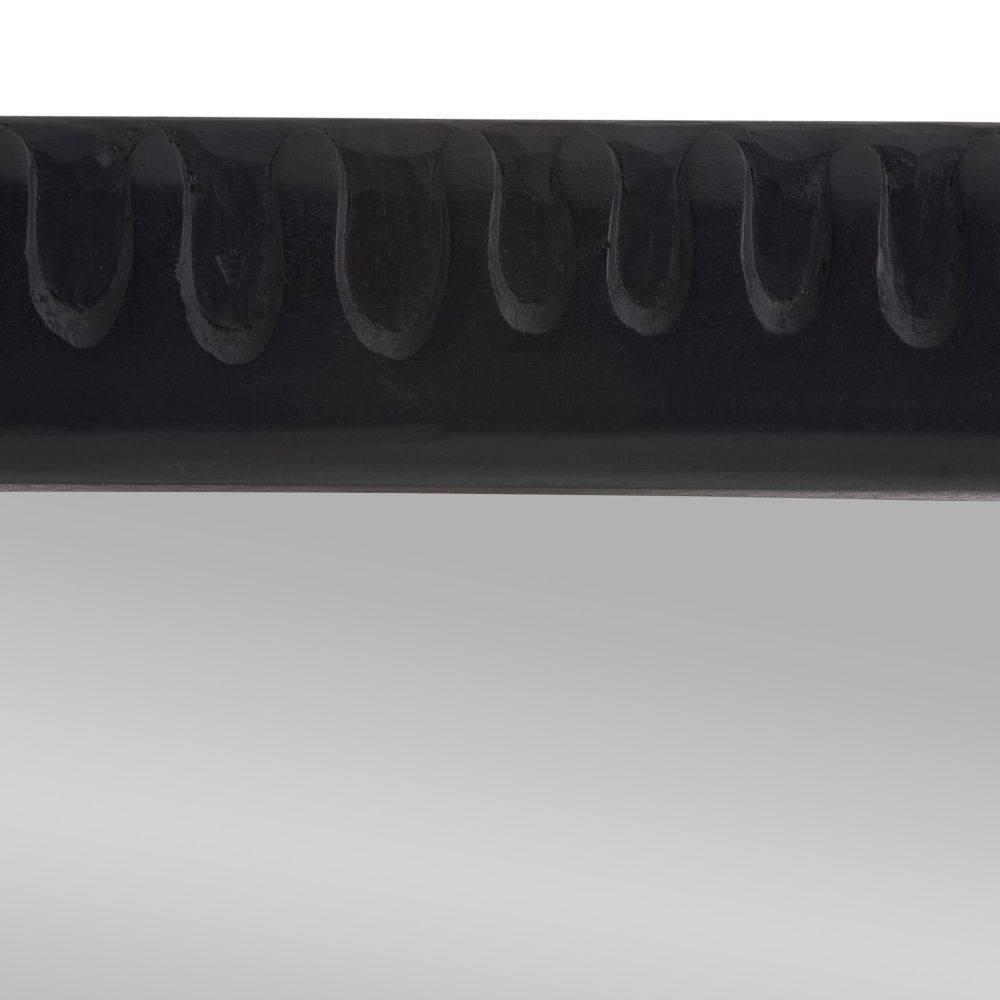 The rhythmic patterns of a vintage print lend an energetic texture to a frame of ebonized mango wood. This statement style was designed to catch the light in each subtle indentation. Can be hung both vertically and horizontally. Secured at the back with a cleat attachment.