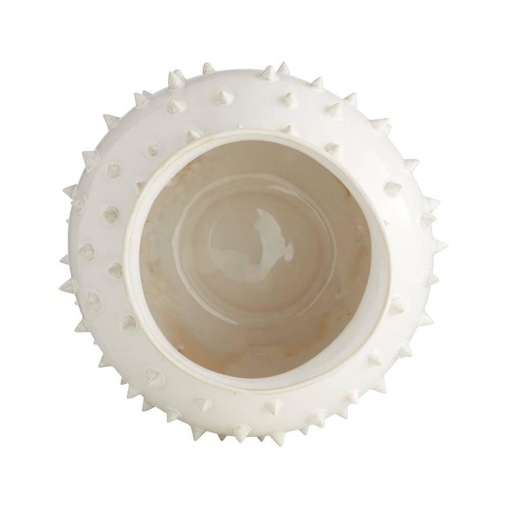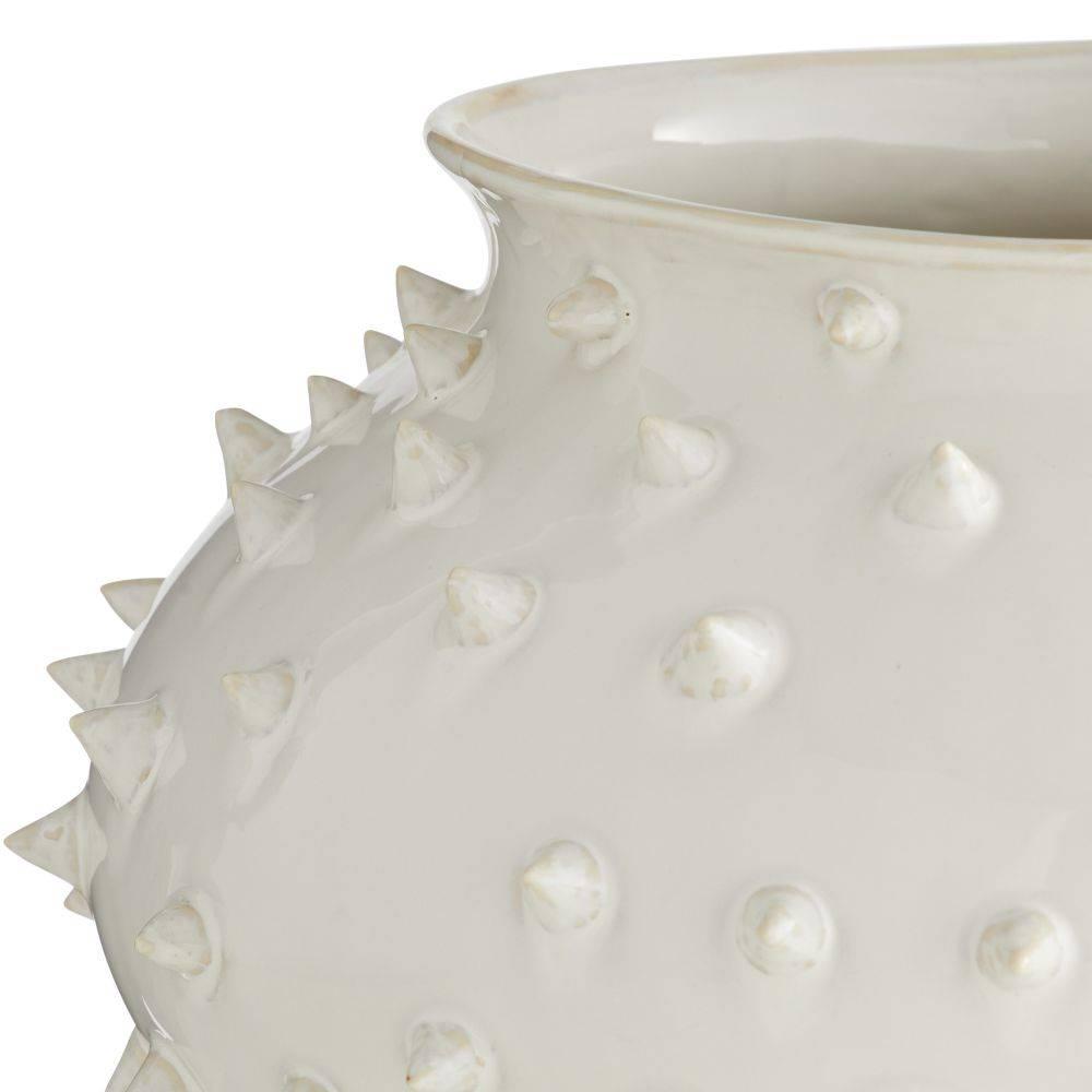 This ceramic vase's irregular shape and spiked surface recall a cactus. Glazed with an ivory crackle finish, it can be staged with the matching tall Grenell vase or on its own. Finish will vary.