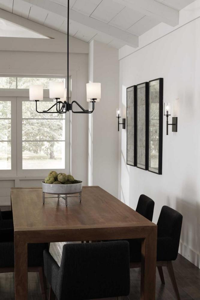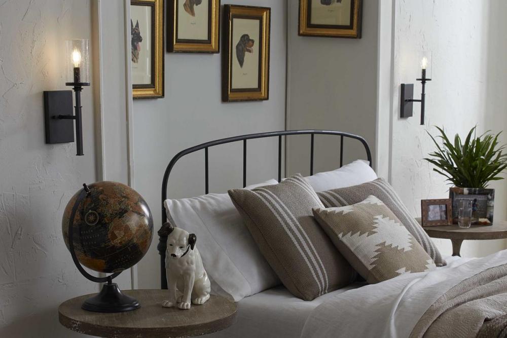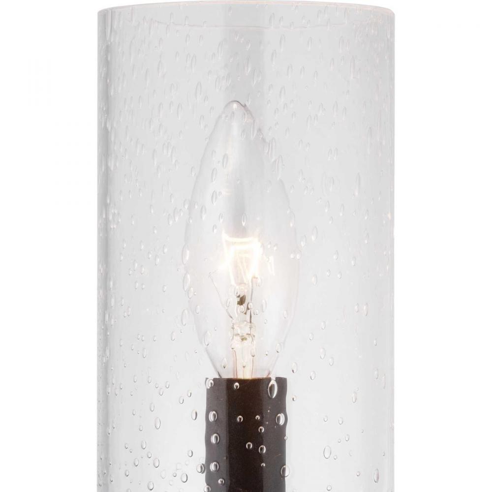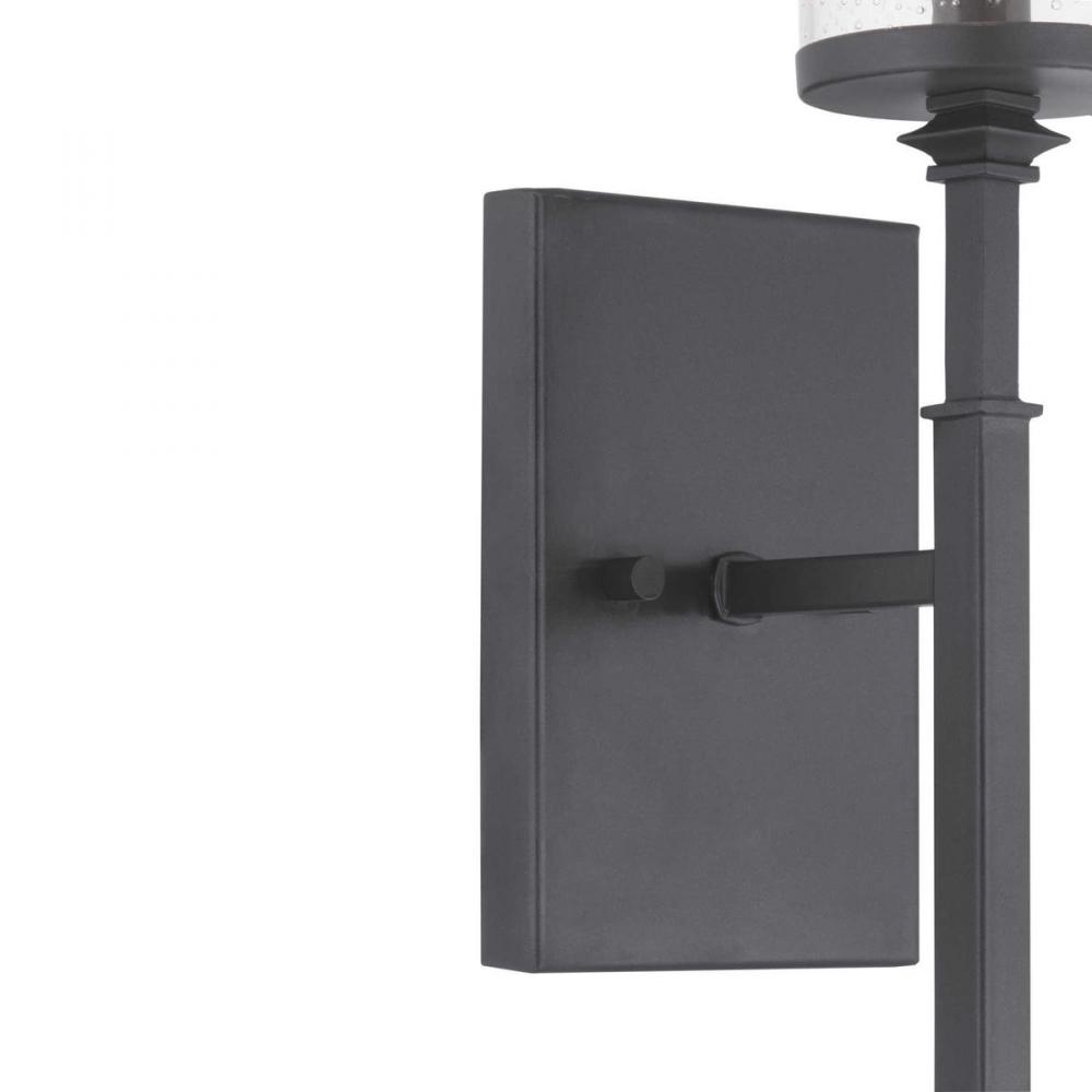 A display of substantial style in an one-light wall bracket, Gresham Collection’s frame was inspired by the elegance of traditional iron structures. Specific attention to forging details creates a distinctive collection for Transitional and Farmhouse interior spaces. Seeded glass shades and a Graphite finish pair together to complete the look.