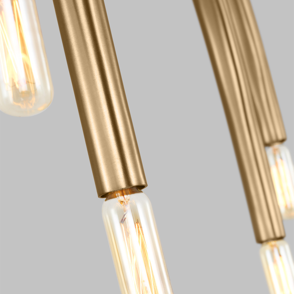 Add a modern statement with this unique chandelier. Hadden's mobile-like form allows you to adjust the arcing arms for an arrangement of your design. Playfully proportioned center hub and two finish options give this series plenty of elegant contrast.