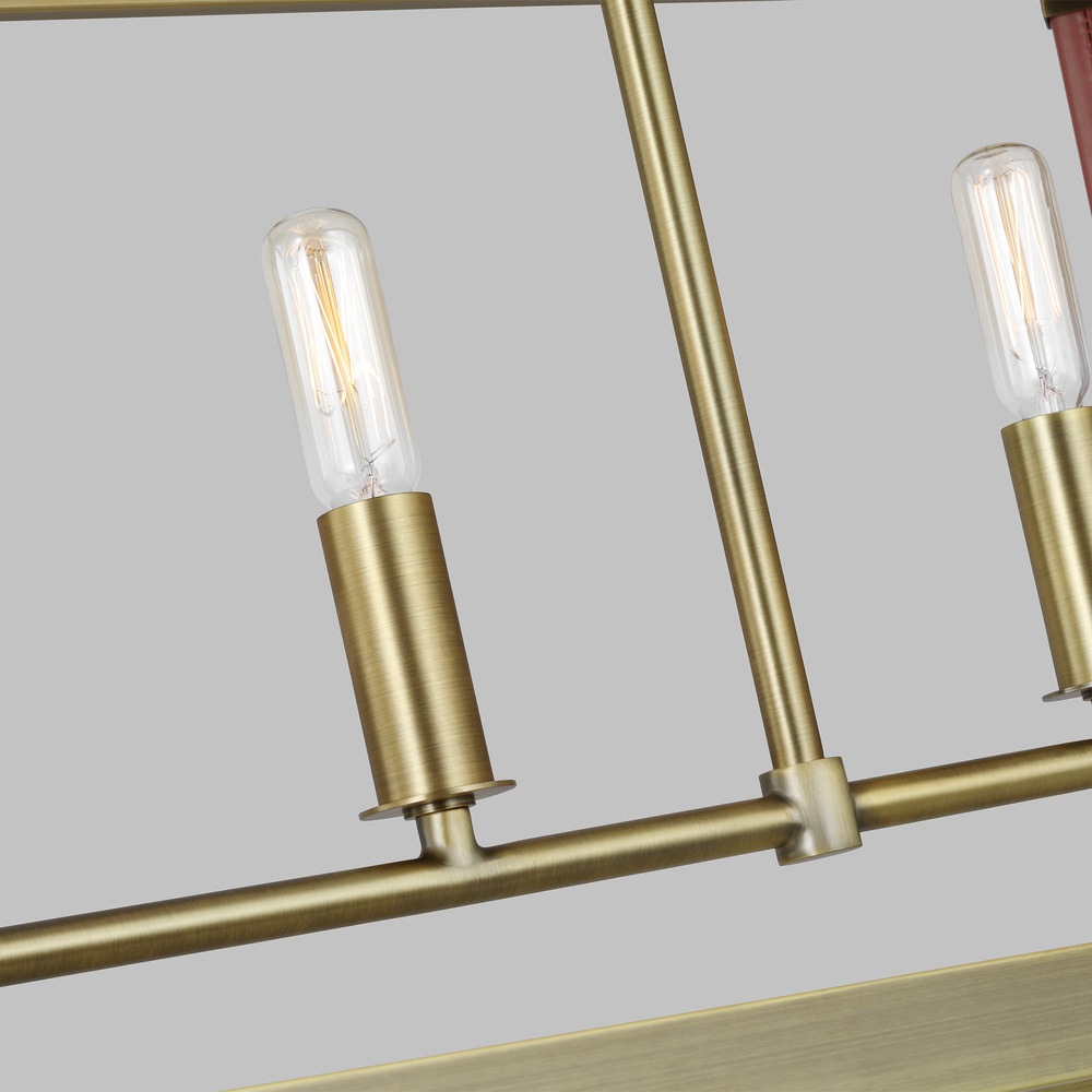 The Hadley linear chandelier by Lauren Ralph Lauren is a classic lantern with leather details. The combination of leather and steel gives this series equestrian flair. A truly transitional series that can be at home in any décor. Available in Polished Nickel or Time Worn Brass.