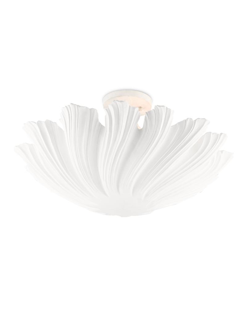 Our Hadley Semi-Flush is made of wrought iron and composite in a gesso white finish to look like a tassel. The white semi-flush with its striated bell shape is beautifully feminine.