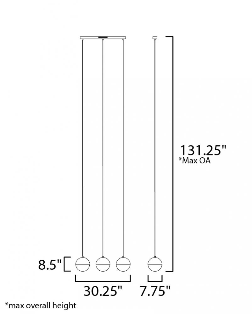 Spun metal semi spheres finished in Satin Nickel, Metallic Gold or Matte Black, cap a Satin White glass shade. Installed into each fixture is an omni-directional LED bulb that evenly illuminates the glass while providing long life operation.