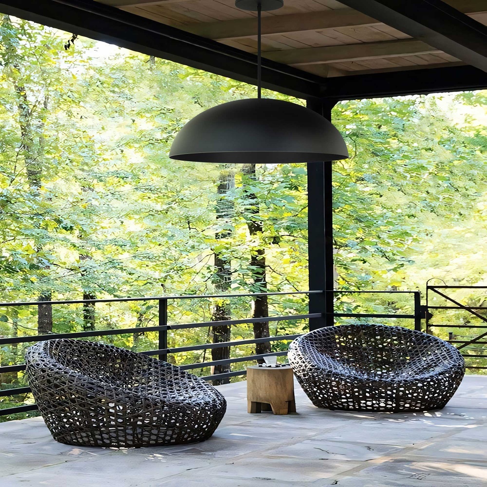 The Half Round LED Pendant makes a bold statement with its clean, minimalist design and commanding presence. Crafted from durable aluminum and wet location listed, it seamlessly adapts to both exterior and interior spaces. Its expansive silhouette and sleek lines create a striking focal point, blending modern simplicity with dramatic scale. Ideal for open spaces and high ceilings, this fixture delivers both style and function, casting a warm, even glow that enhances contemporary and transitional settings. Featuring 5-CCT customization and dimming capabilities, it offers tailored lighting for any ambiance.