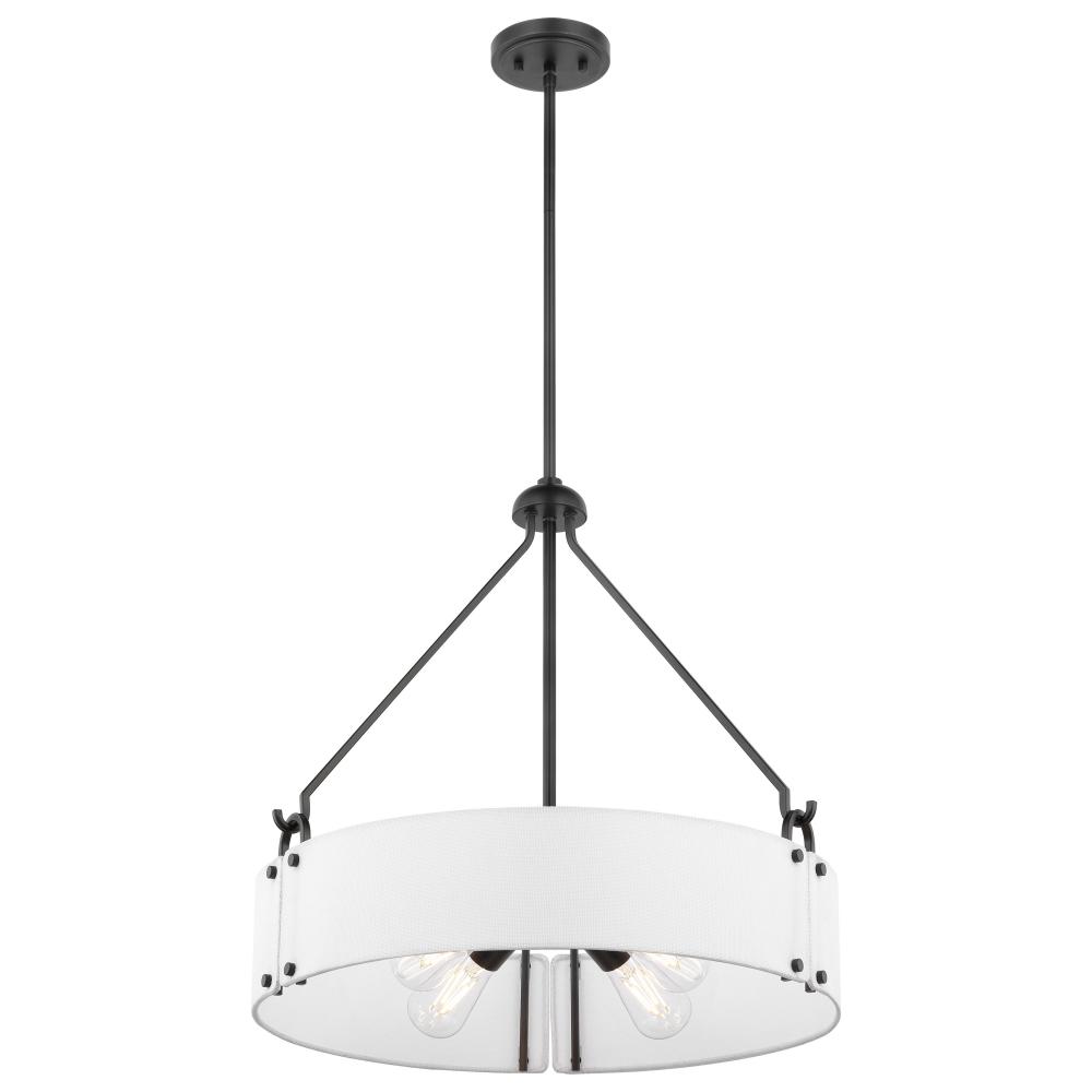Halter; 4 Light Pendant; Medium Base; 60 Watt; Matte Black Finish; White Fabric Shade