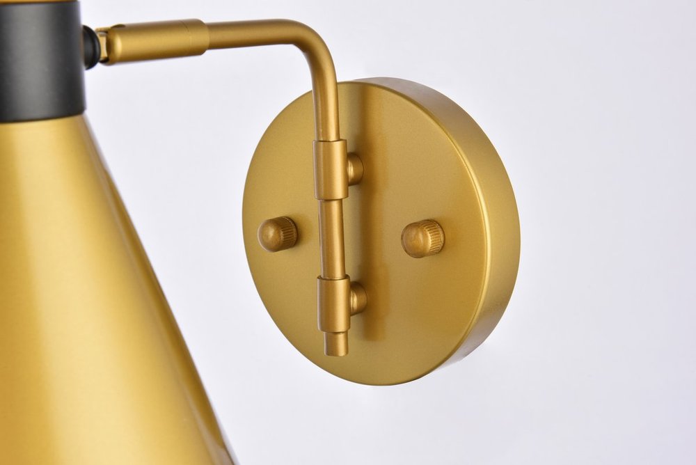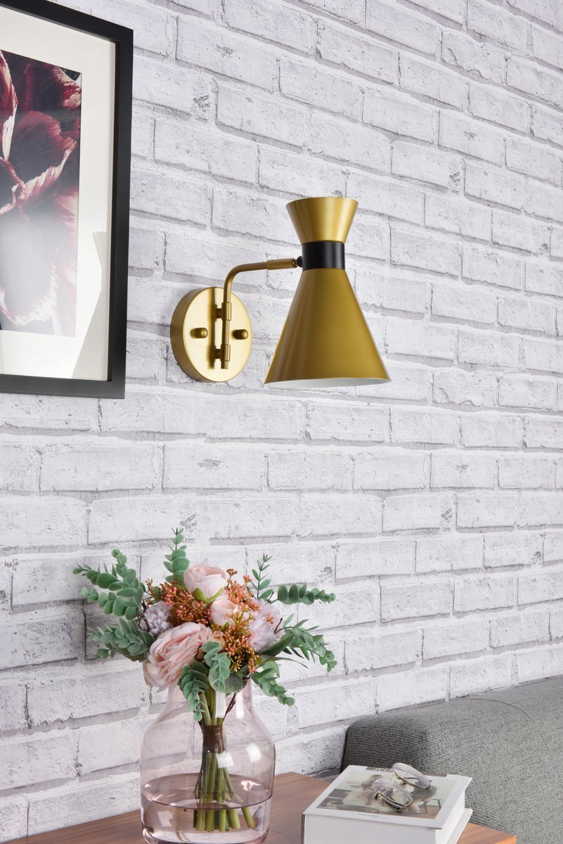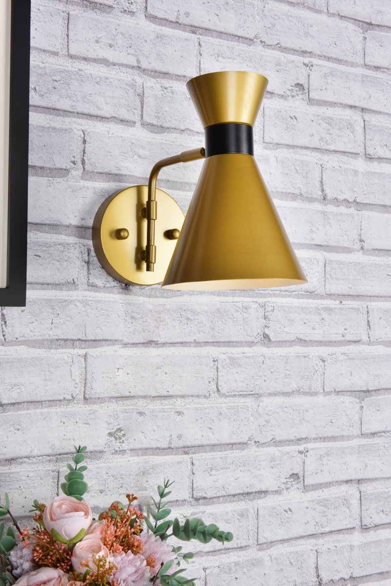 Illuminate your space with the brilliance of the Halycon Collection wall sconce. The cone dome creates a unique lighting and includes a dimmable feature that creates a calm mood. Available in a black and/or brass finish, this minimalistic piece will fit perfectly into your living room or bedroom. This product comes in a five or six inch length and requires one E26 socket. Light bulbs not included.