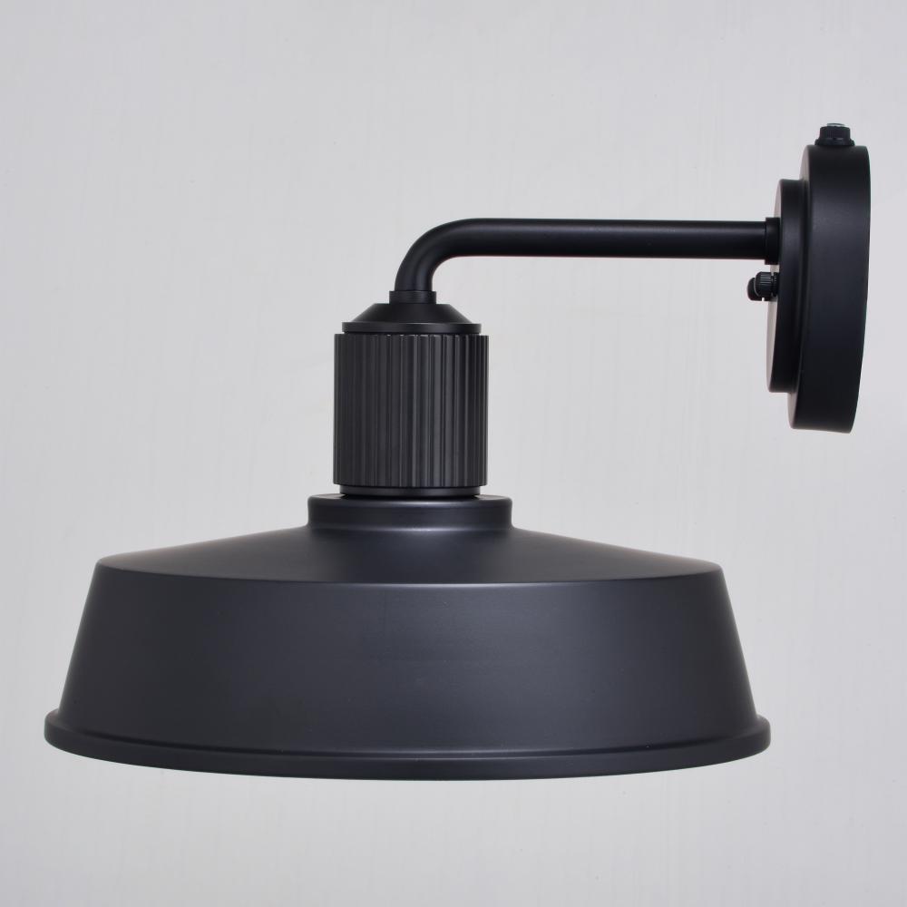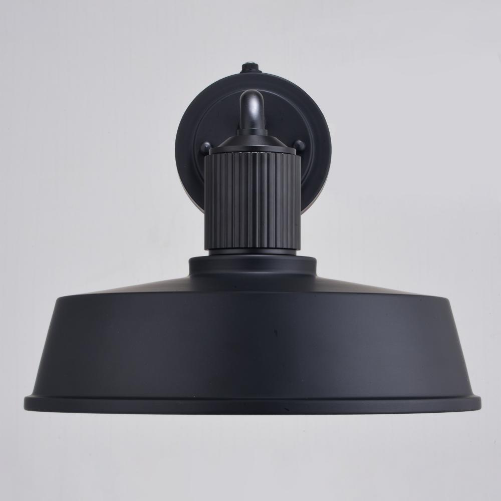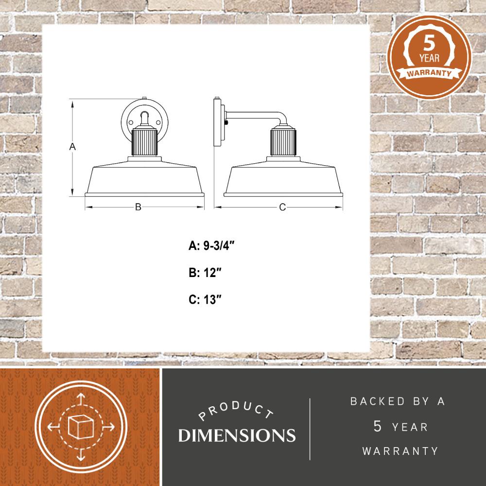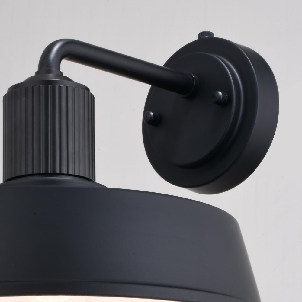 Modern industrial styling is at its best in the affordable Hammond wall light. A monochrome finish of matte black on the outer areas and glossy white on the inner shade highlight this fixture’s striking appeal. The ribbed texture above the metal shade adds an eye-catching accent detail. It has a built-in dusk to dawn photocell that automatically turns the light on at dusk and off at dawn, saving energy during daylight hours. Add this modern barn light to any outdoor or indoor space where an industrial or farmhouse style will be accentuated.