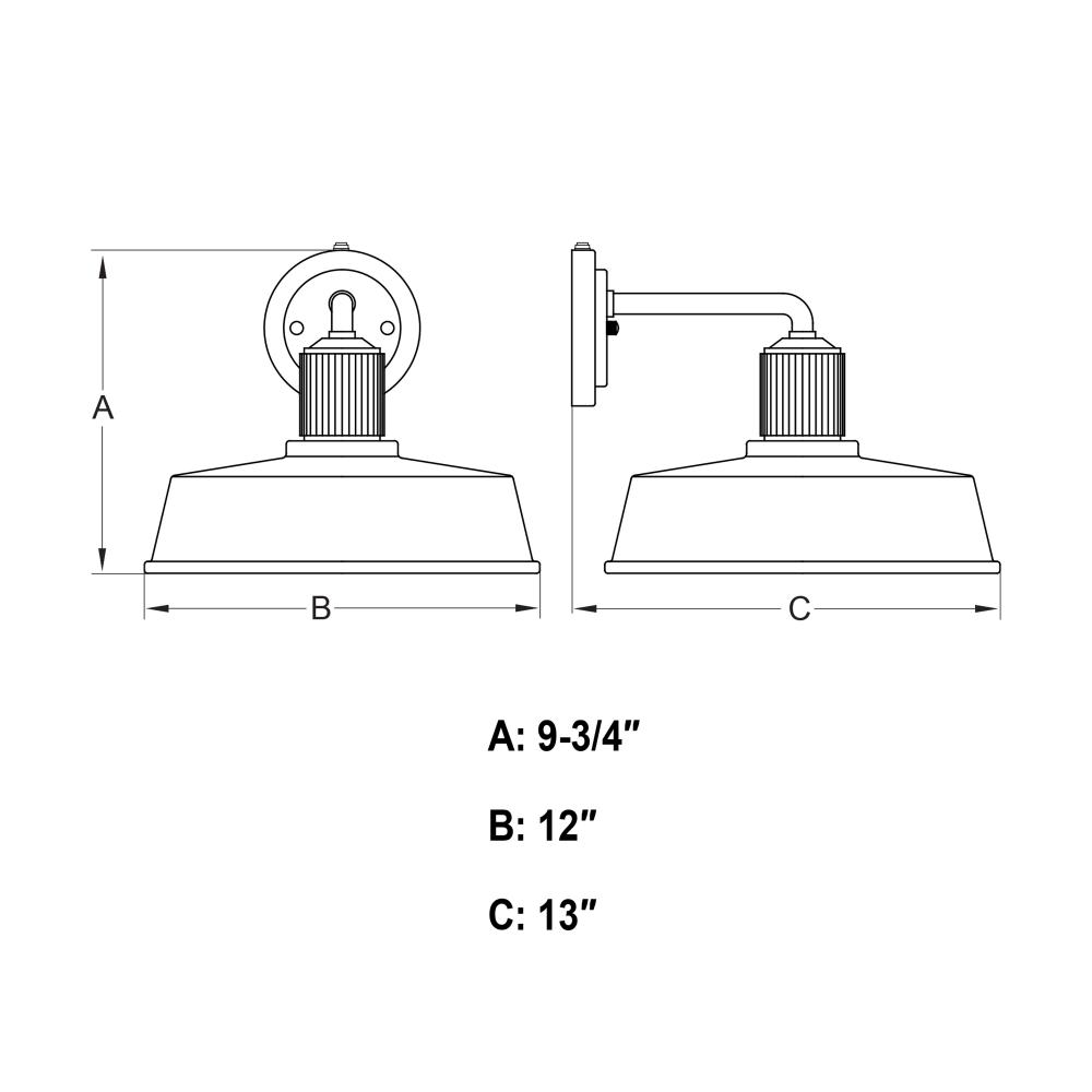 12-in W x 9.75-in H x 13-in D with 4.75-in W x 4.75-in H backplate