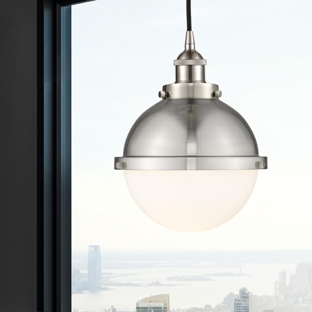 Brushed Satin Nickel Hampden 8" with Matte White glass