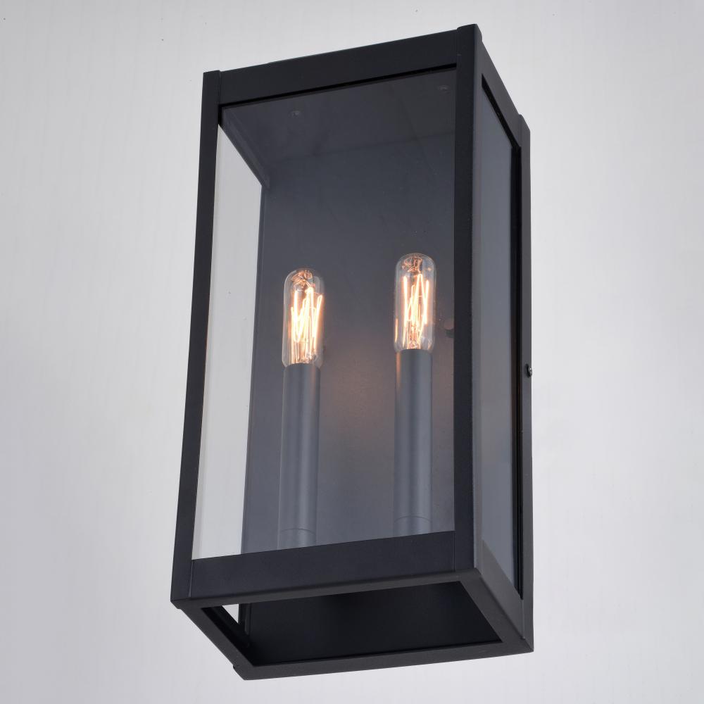 Elongated, clear flat glass panels frame the Hampton collection for a clean, contemporary feel. The lantern handle and rectangle shape adds a timeless element to this outdoor wall sconce collection. Finished in textured black, the Hampton creates a bold but understated look perfect for highlighting your space. This outdoor wall light is ideal for your porch, entryway, garage, laundry room, or any other exterior or interior area of your home.