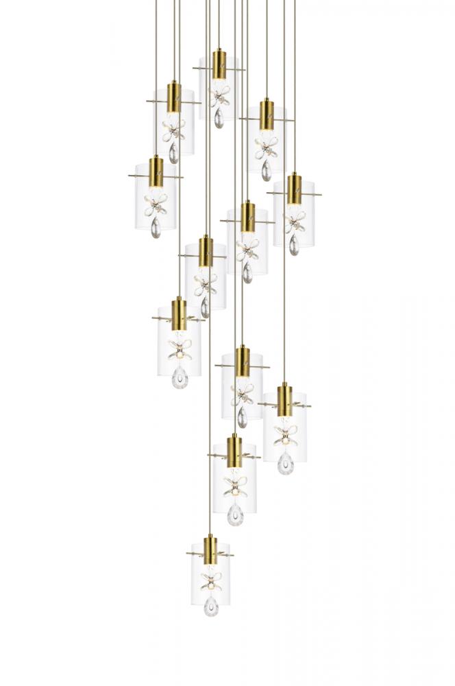 The Hana collection sparkles with an extraordinary display of faceted crystal pendalogues, creating the illusion of a shimmering cascade of ornamentation pouring from a sleek metal canopy. These fixtures would be a commanding visual presence in any room, and will fit comfortably in smaller spaces. Lighting illuminated with led diodes emitting 3000K soft white.