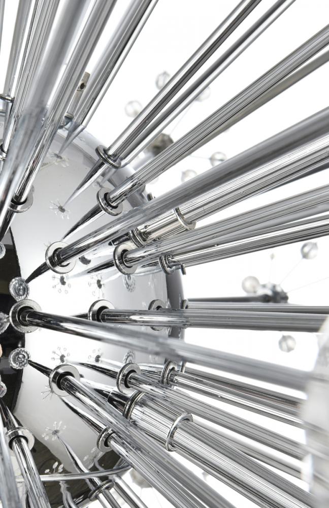 Features a striking sputnik-style shape with sparkling crystal accents for a luxurious modern touch.