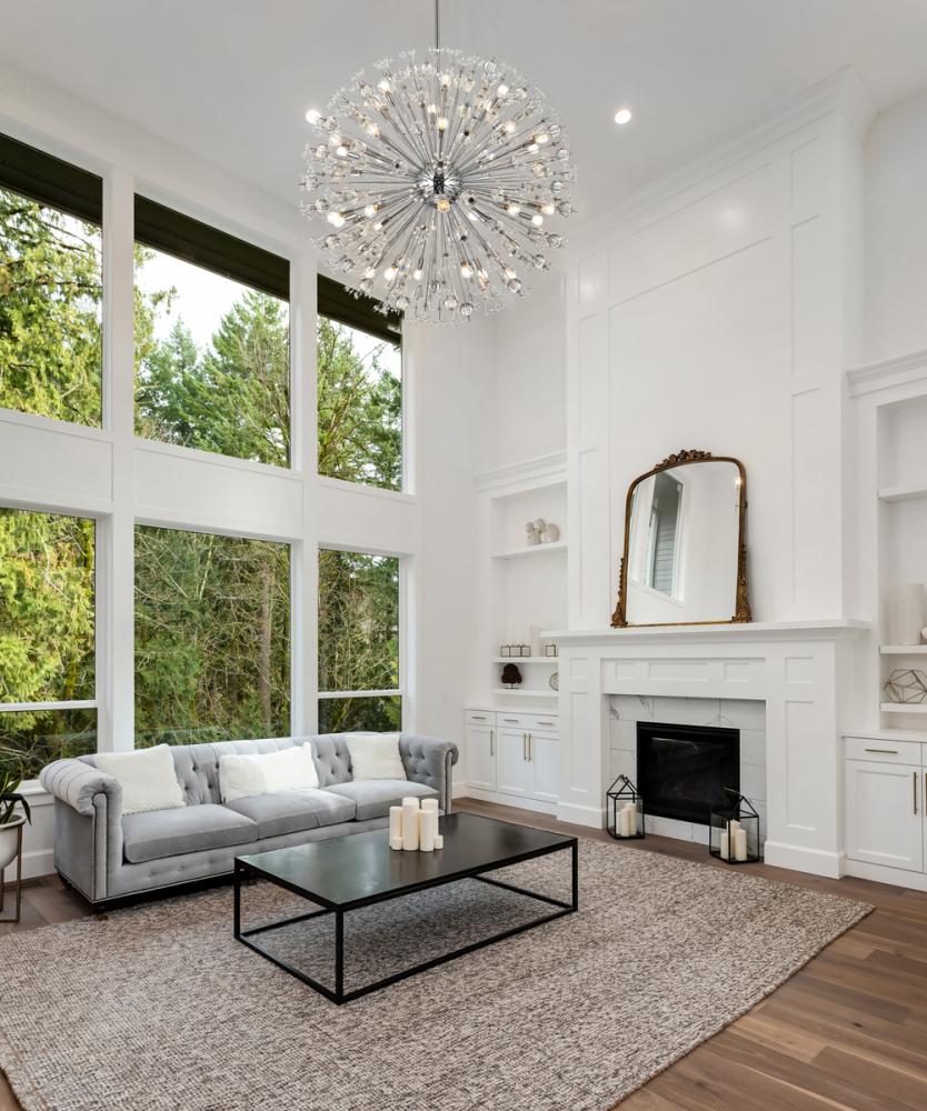 Features a striking sputnik-style shape with sparkling crystal accents for a luxurious modern touch.