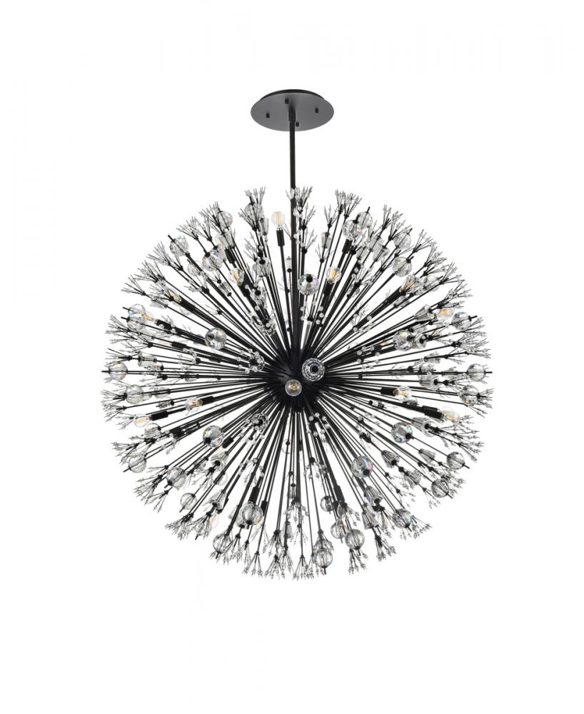 Features a striking sputnik-style shape with sparkling crystal accents for a luxurious modern touch.
