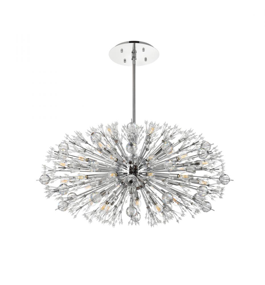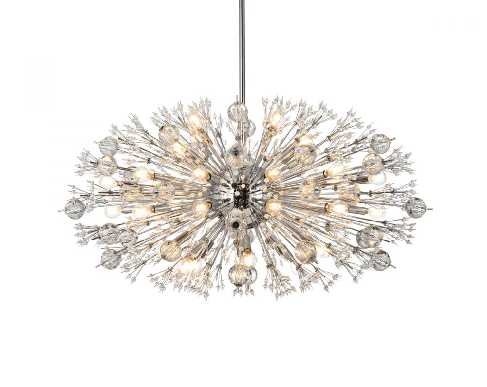 Features a striking sputnik-style shape with sparkling crystal accents for a luxurious modern touch.