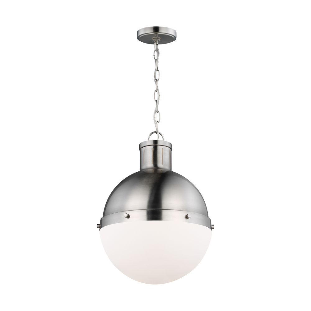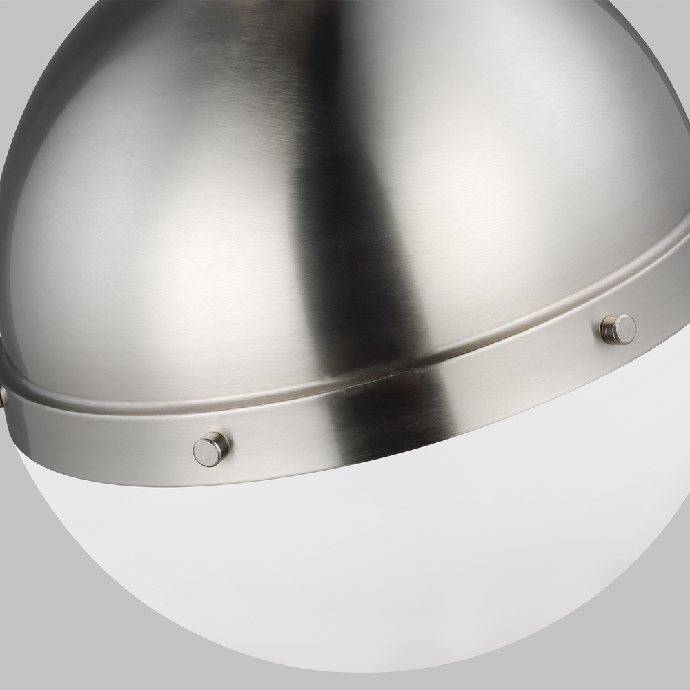 The Hanks medium modern pendant is offered in the Midnight Black/Satin Bronze, Antique Brushed Nickel, Satin Bronze, or Brushed Nickel finish. This globe style pendant is crafted with an antique finish and white glass shade, offering an approachable style with direct lighting. The multiple use of color and finishes exude mid-century modern style to help entice any updated space.