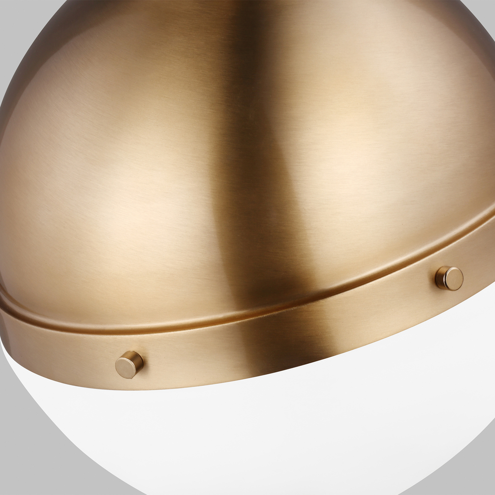 The Hanks medium modern pendant is offered in the Midnight Black/Satin Bronze, Antique Brushed Nickel, Satin Bronze, or Brushed Nickel finish. This globe style pendant is crafted with an antique finish and white glass shade, offering an approachable style with direct lighting. The multiple use of color and finishes exude mid-century modern style to help entice any updated space.