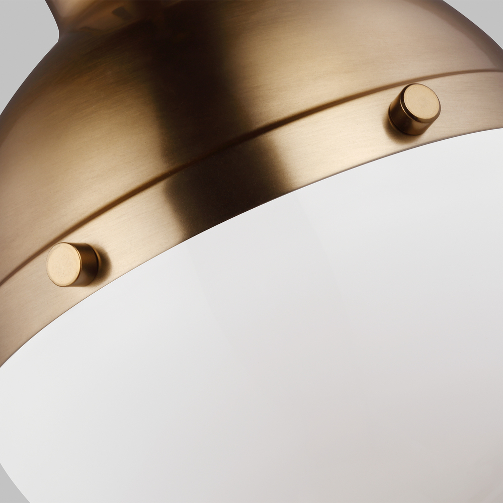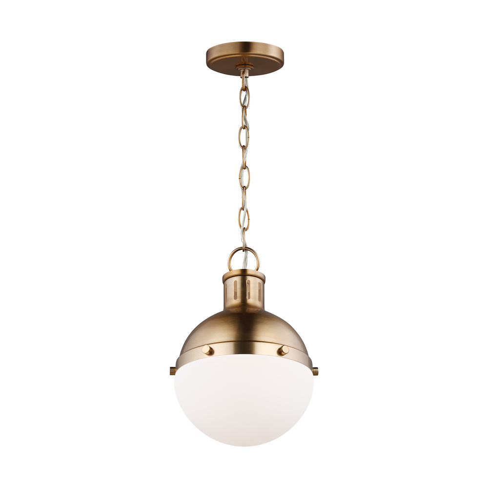 The Hanks medium modern pendant is offered in the Midnight Black/Satin Bronze, Antique Brushed Nickel, Satin Bronze, or Brushed Nickel finish. This globe style pendant is crafted with an antique finish and white glass shade, offering an approachable style with direct lighting. The multiple use of color and finishes exude mid-century modern style to help entice any updated space.