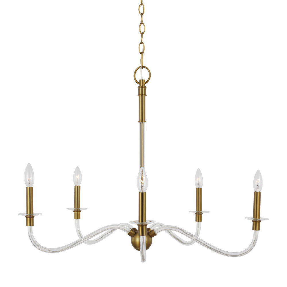 The Beckett family from Chapman & Myers presents Art Deco forms with a modern minimalist sensibility. Crafted of steel, a round metal band holds the clear extruded glass cylinders in place.