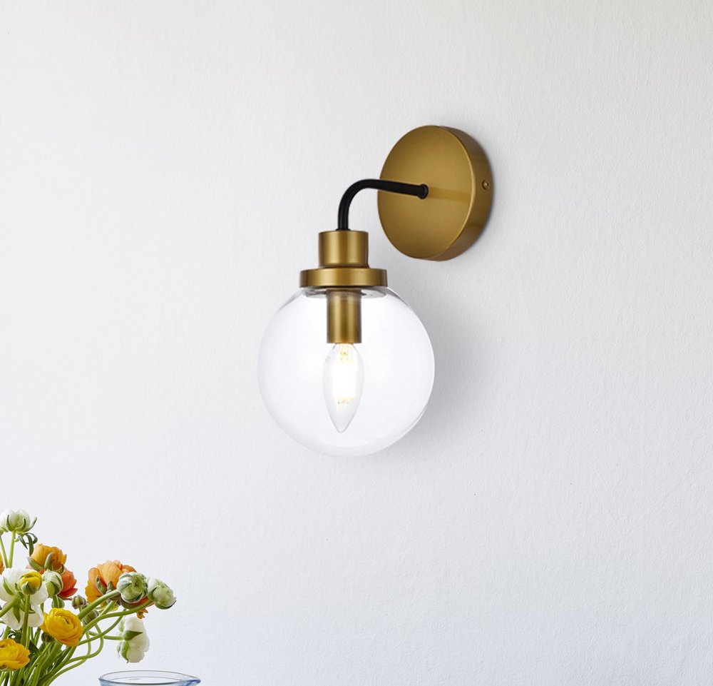Hanson 1 light bath sconce in black with brass with clear shade