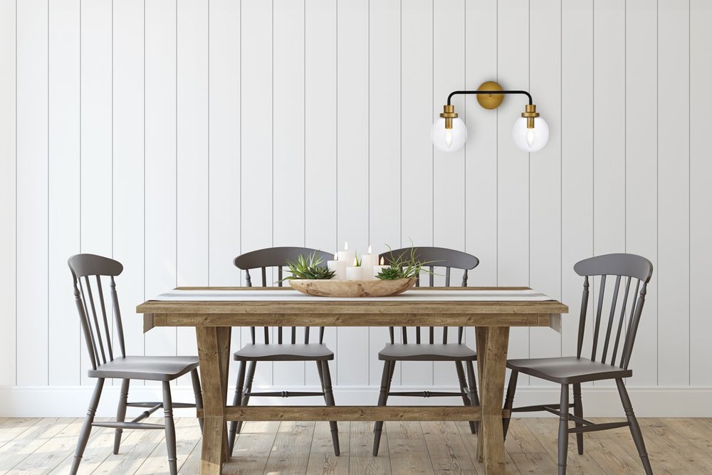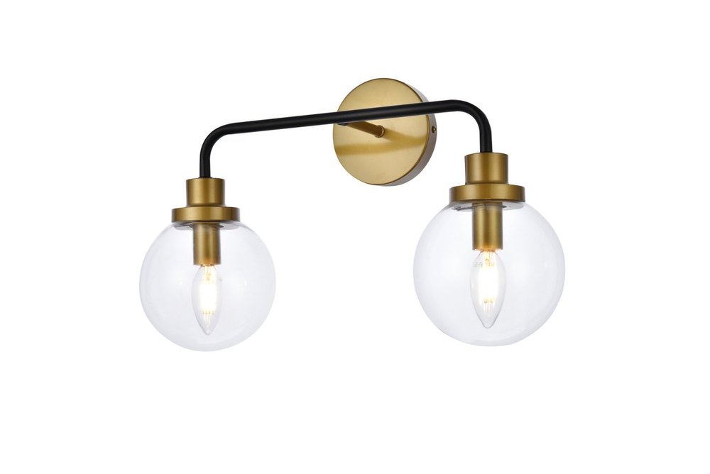 Hanson 2 lights bath sconce in black with brass with clear shade